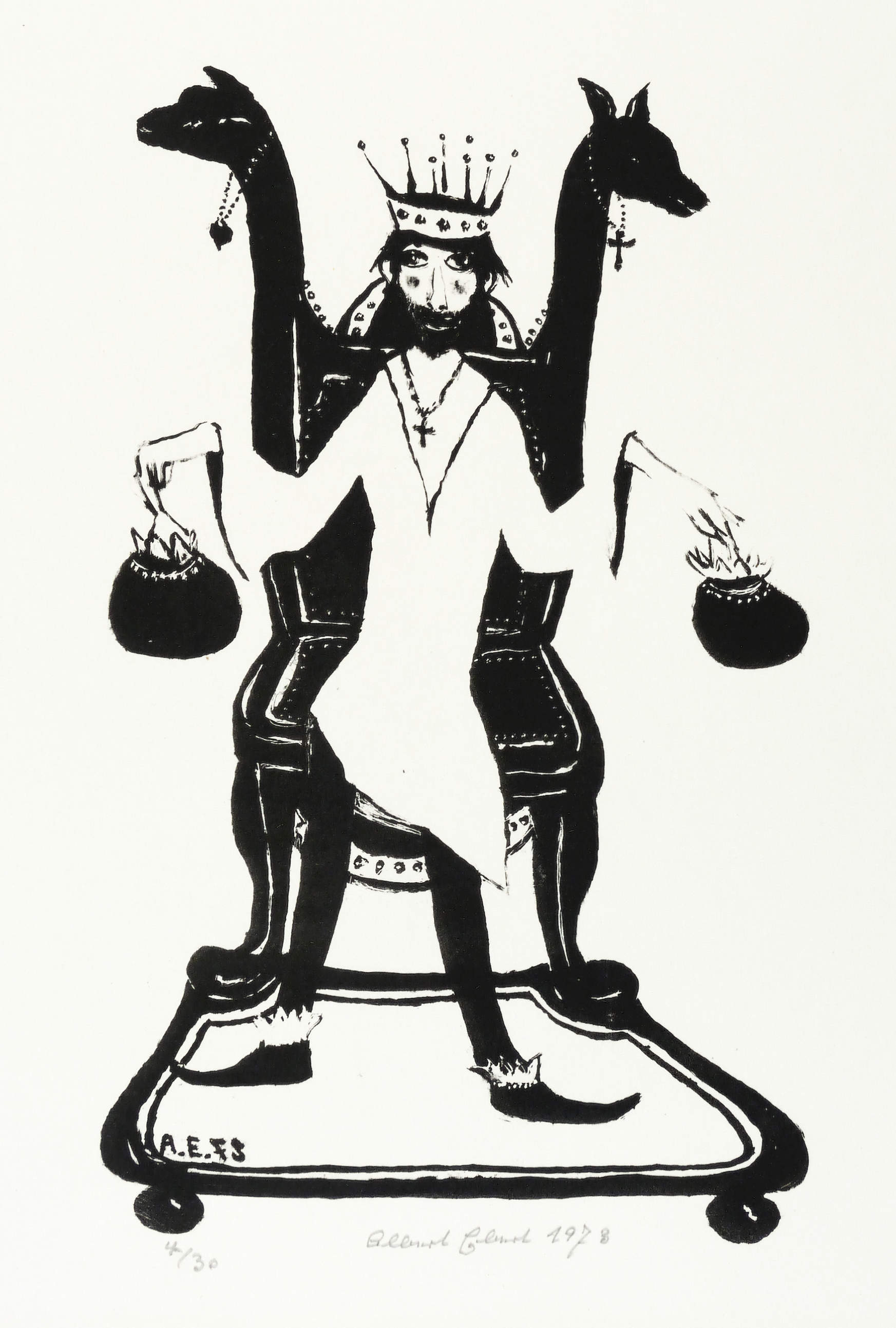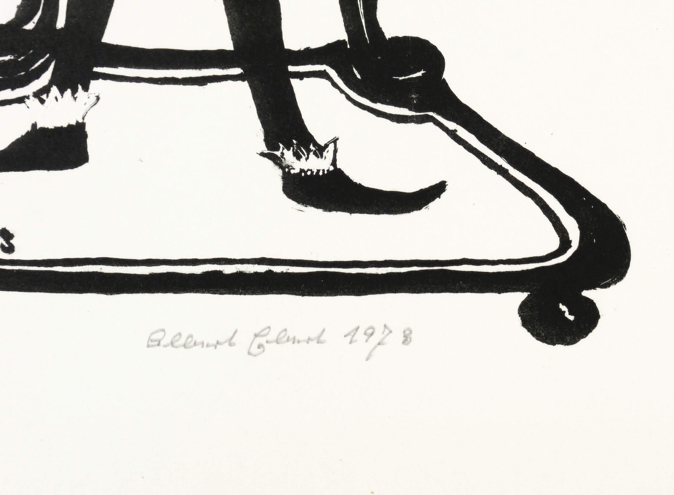 1973. Lithografie / Pinsellithografie, partiell geschabt, in Schwarz, auf Velinkarton. – Originale Künstlergrafik, von Albert Ebert. – Auflage Exemplar Nr. 4/30. – 23,2 x 14,0 cm (Darstellung / Druckbild), 35 x 27 cm (Blatt).