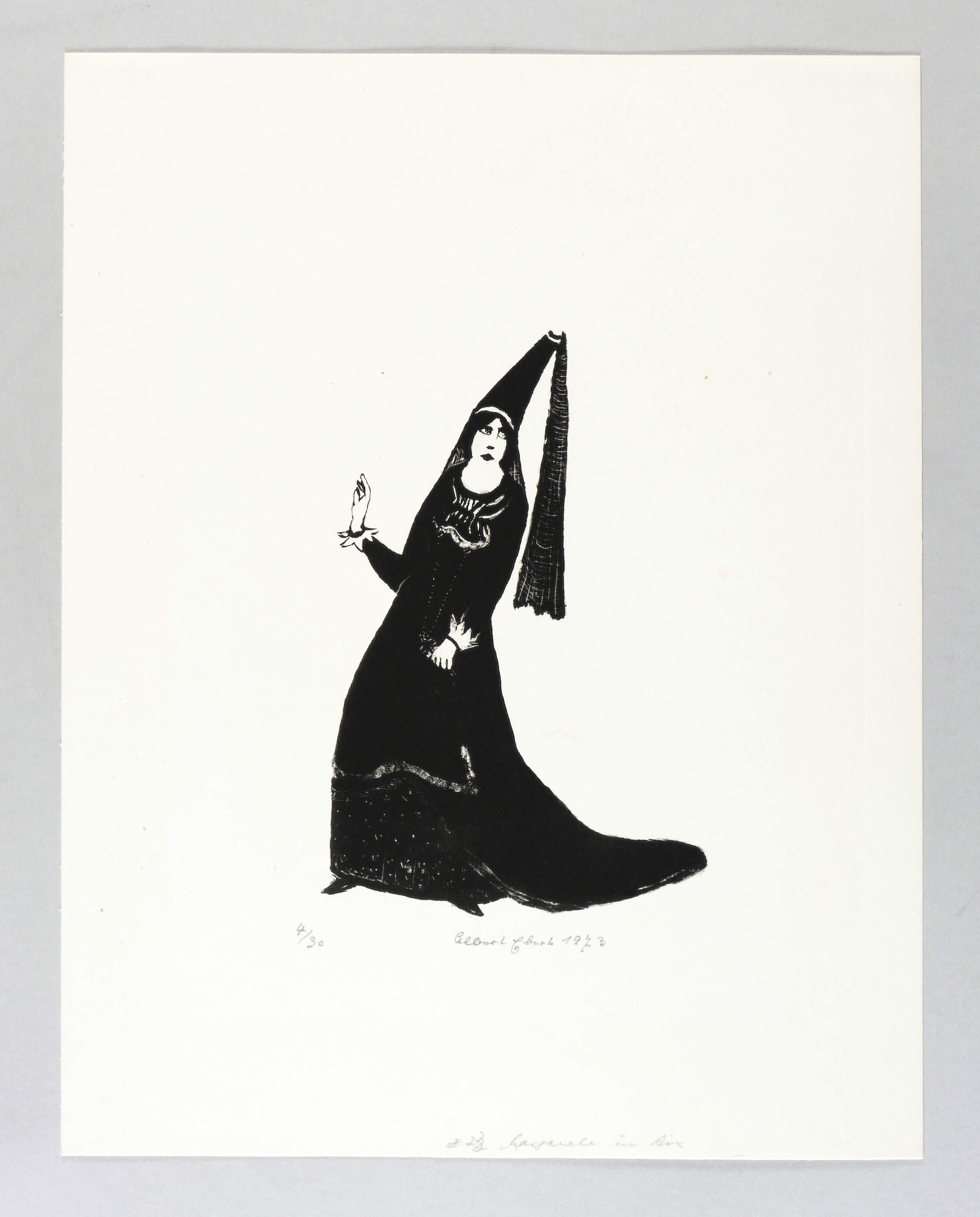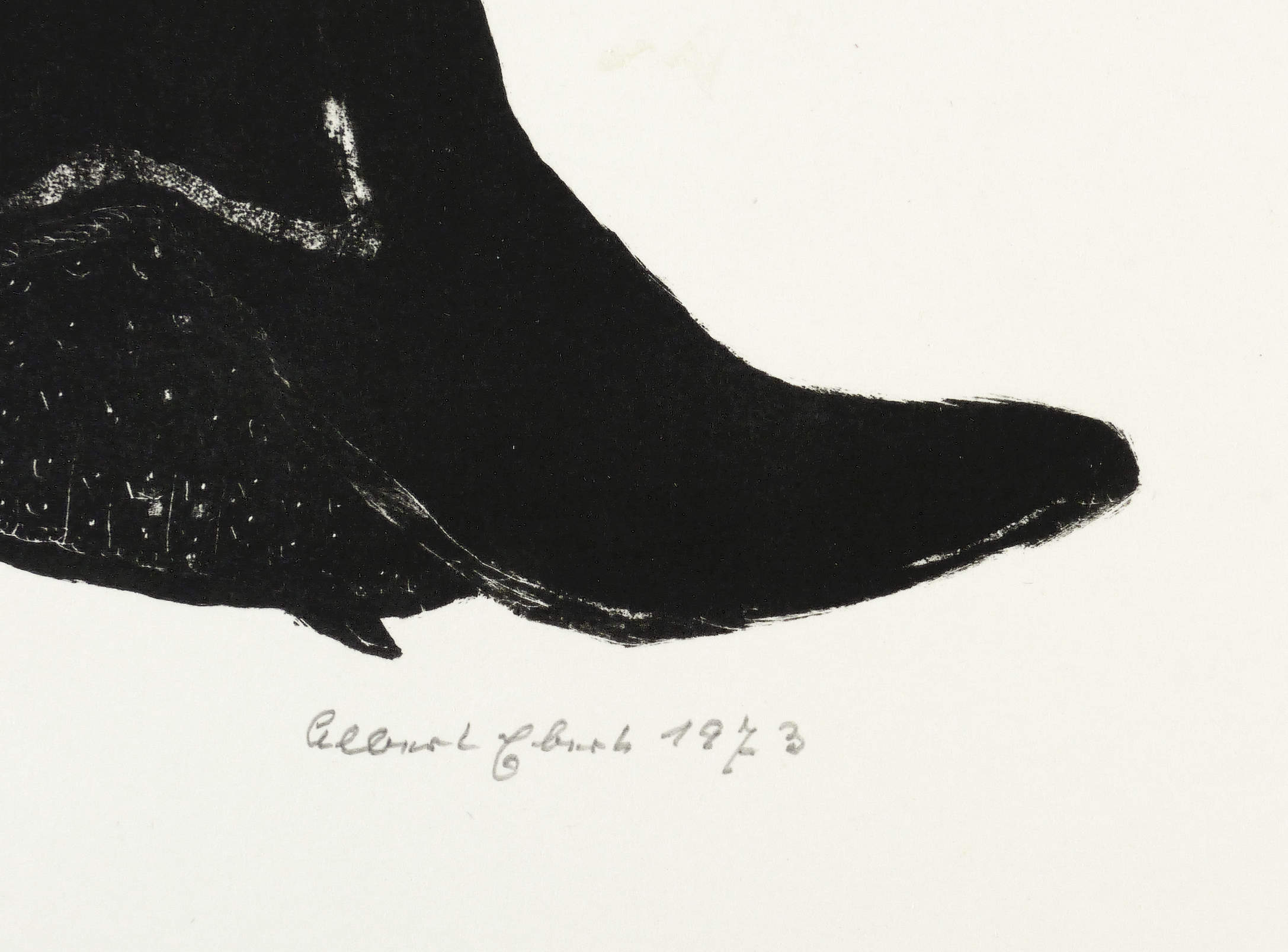 1973. Lithografie / Pinsellithografie, partiell geschabt, in Schwarz, auf Velinkarton. – Originale Künstlergrafik, von Albert Ebert. – Auflage Exemplar Nr. 4/30. – 18,4 x 12,2 cm (Darstellung / Druckbild), 35 x 27 cm (Blatt).