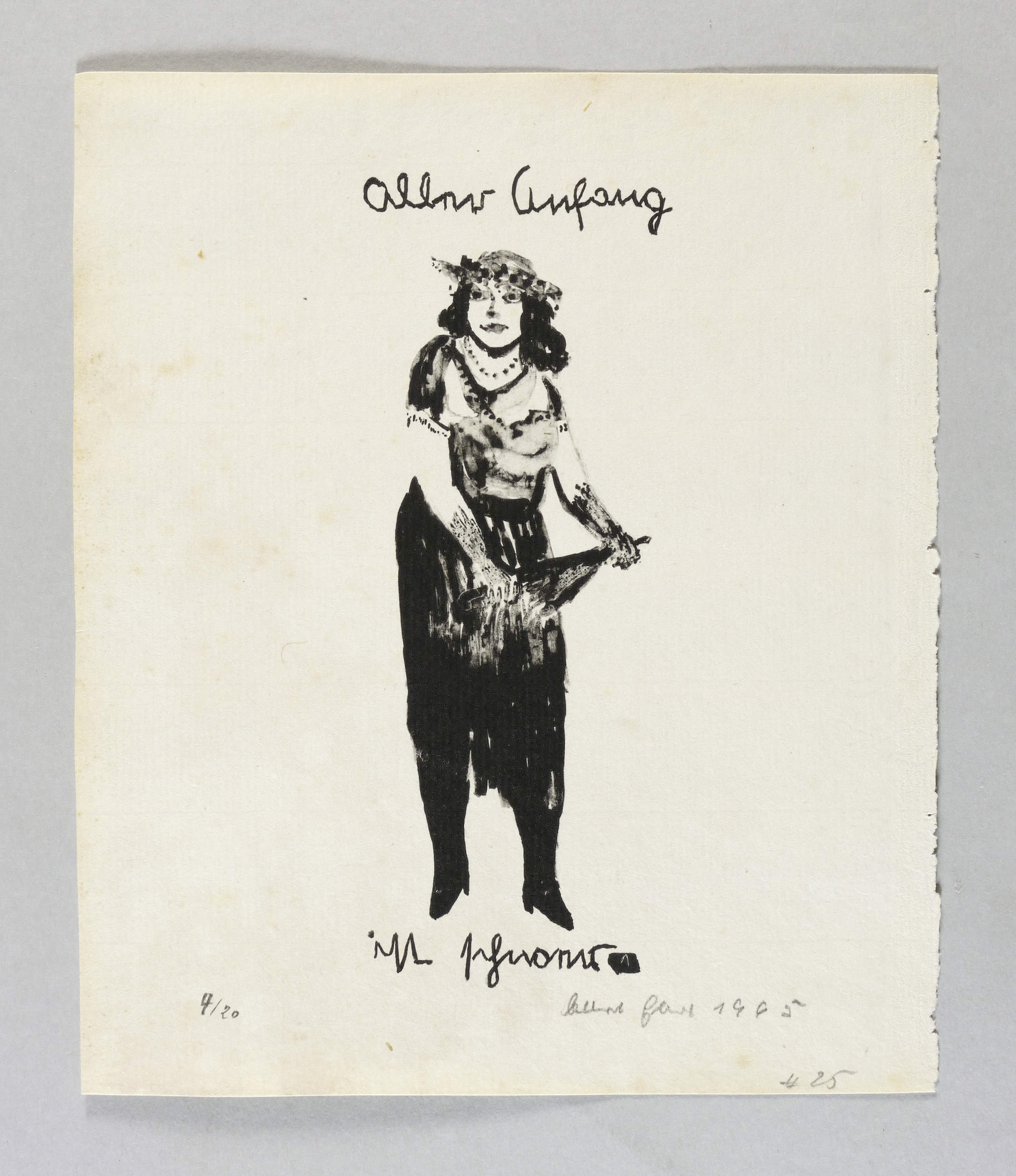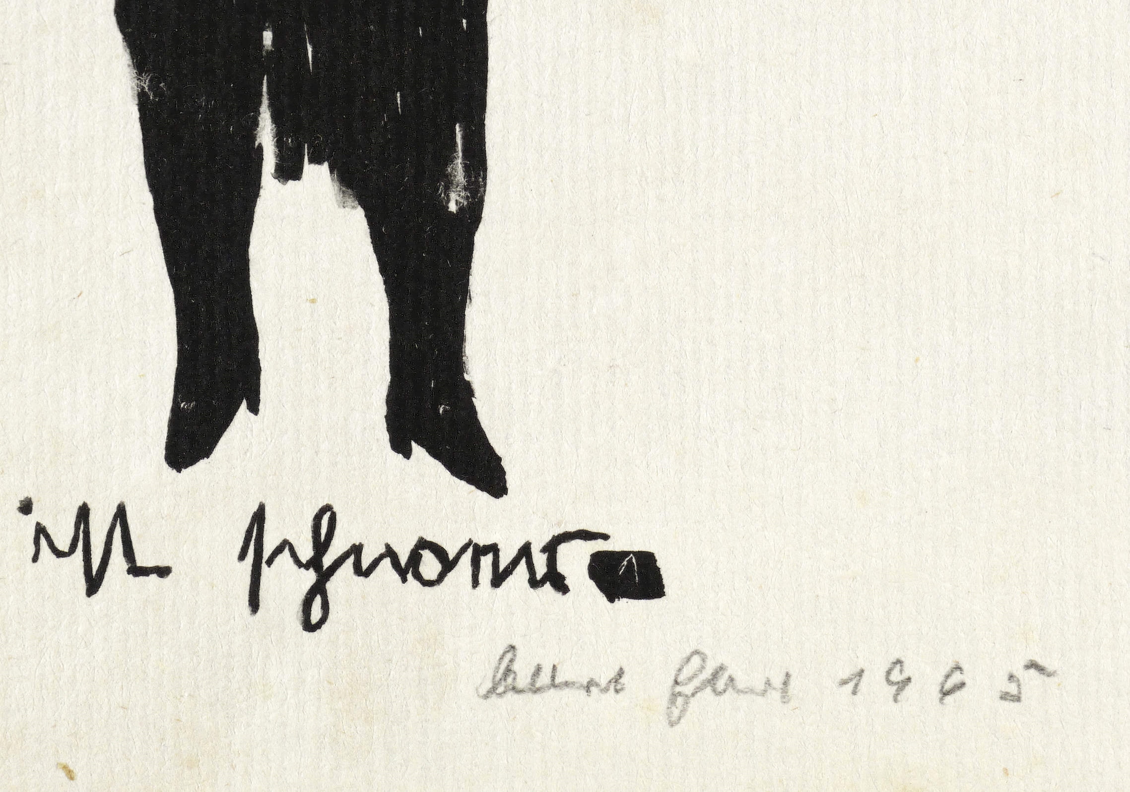 1965. Lithografie / Pinsellithografie, in Schwarz, auf leichtem gelbem Büttenpapier. – Originale Künstlergrafik, von Albert Ebert. – Auflage Exemplar Nr. 4/20. – 15,3 x 5,8 cm (Darstellung / Druckbild), 19 x 16 cm (Blatt).