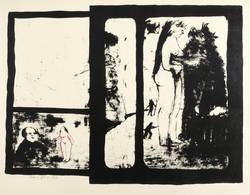 1970. Lithografie / Pinsellithografie, partiell geschabt, in Schwarz, partiell ankoloriert, auf Karton. – Originale Künstlergrafik, von Albert Ebert. – Auflage 30 Exemplare. – 30,6 x 40,4 cm (Darstellung / Druckbild), 38 x 49 cm (Blatt).