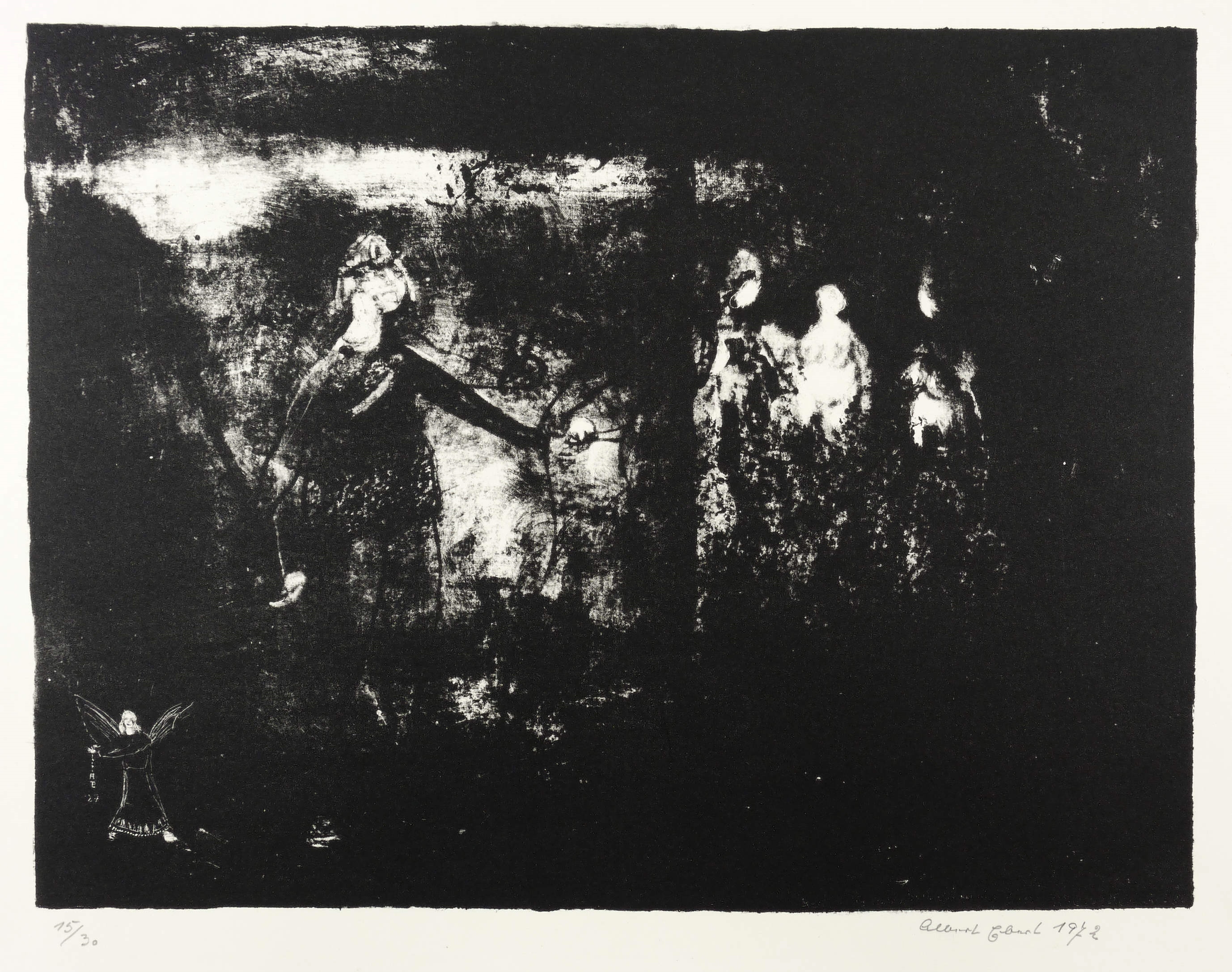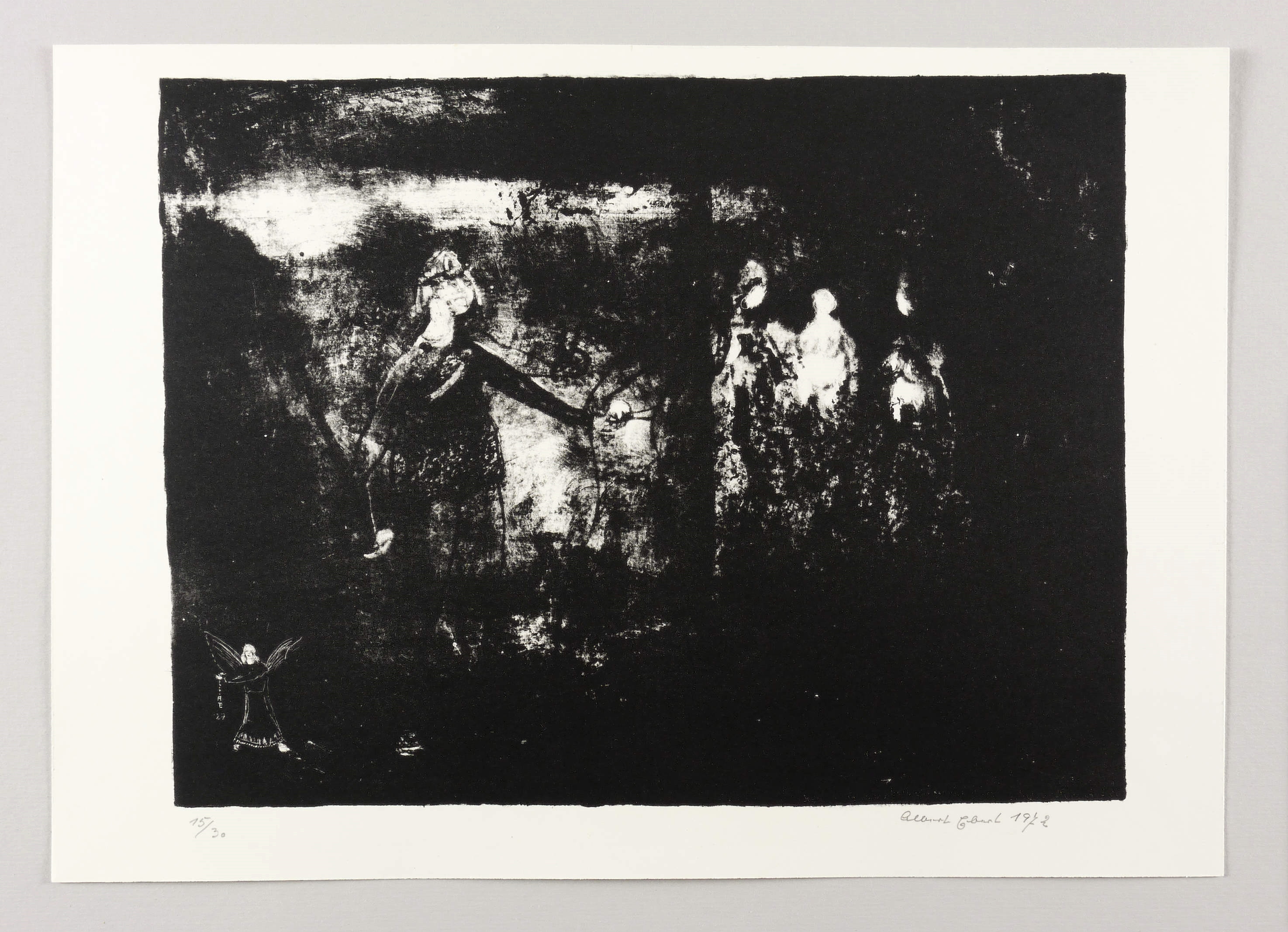 1972. Lithografie / Pinsellithografie, partiell gewischt & geschabt, in Schwarz, auf Velinkarton. – Originale Künstlergrafik, von Albert Ebert. – Auflage Exemplar Nr. 15/30. – 26,4 x 34,8 cm (Darstellung / Druckbild), 30 x 43 cm (Blatt).