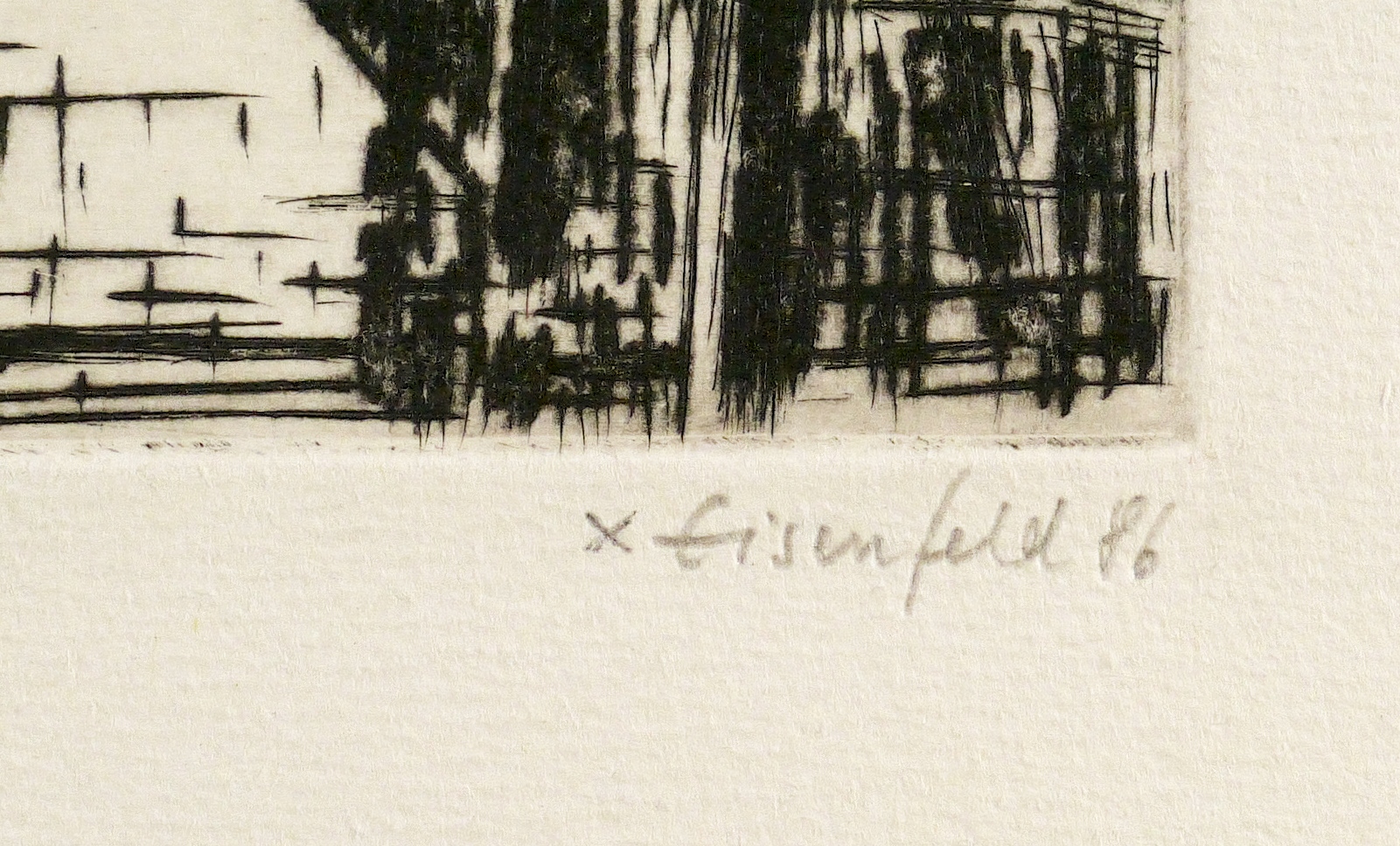 1986. Radierung / Strichätzung & Kaltnadel, in Schwarz, auf Hahnemühle-Bütten. – Originale Künstlergrafik, von Ulrich Eisenfeld. – Auflage Exemplar Nr. 2/15. – 9,9 x 14,6 cm (Darstellung / Platte), 39,5 x 26 cm (Blatt).