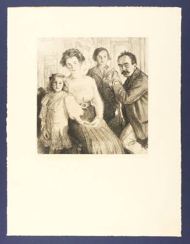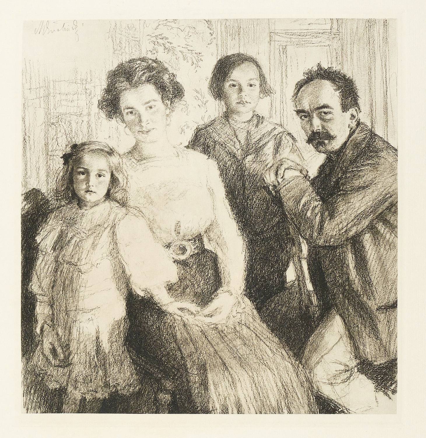 In der Platte links oben signiert. Verso in Bleistift von fremder Hand bezeichnet: ″MAX SVABINSKY - KAREL VEYRYCH U. FAMILIE. - 1910 HELIOGRAVURE″. Wasserzeichen mit Vignette und Monogramm VGZ. – Zusammen mit der Familie Vejrych weilten der der Künstler und seine Frau Ela um 1900-1910 oft in Kozlov bei Česká Třebová. Hier, im Tal der Böhmischen Triebe, entstanden einige seiner bedeutendsten Landschaftsbilder. – Originalrandiges Exemplar. Tadellos erhalten.