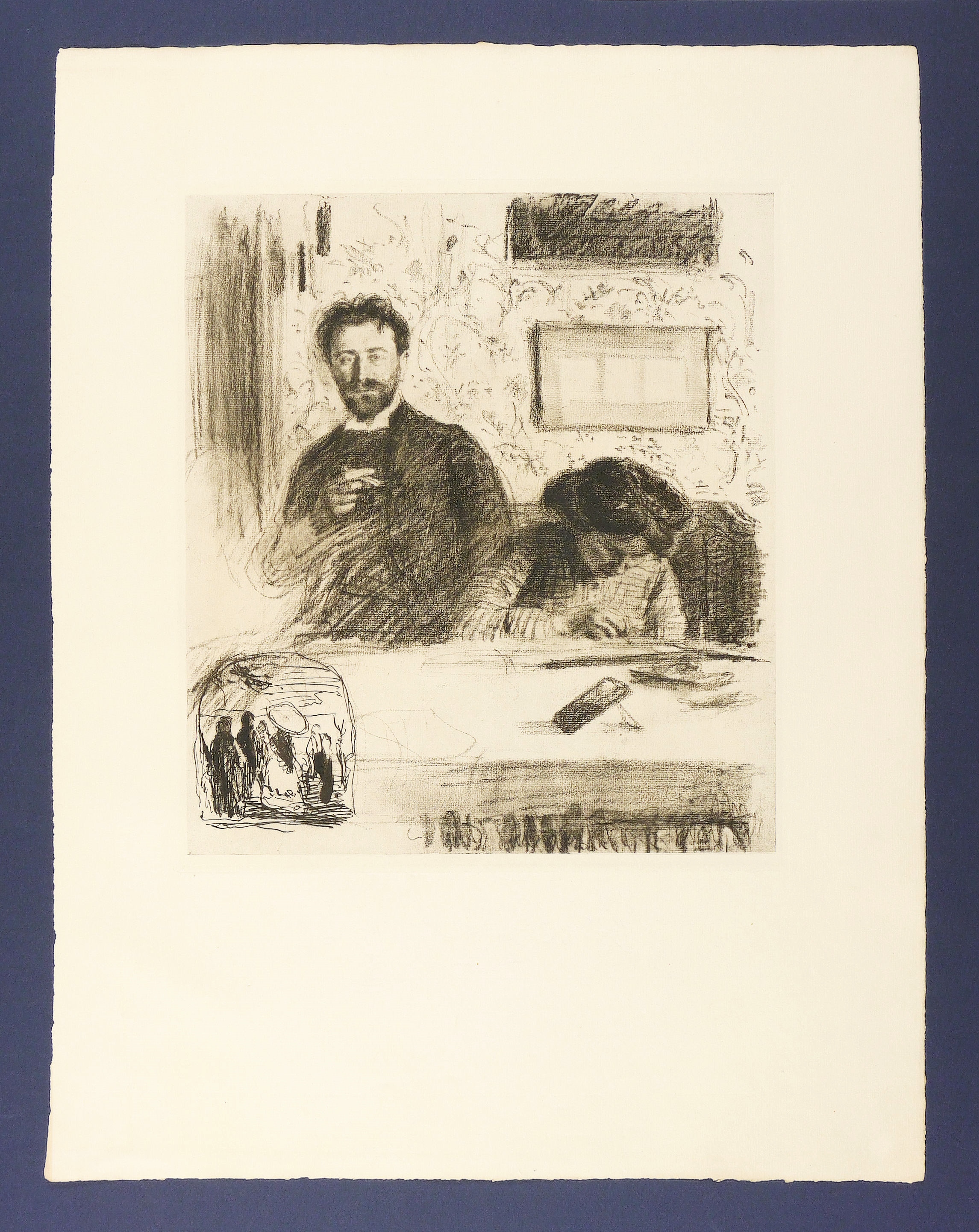Verso in Bleistift von fremder Hand bezeichnet: ″MAX SVABINSKY. - SELBSTBILDNIS MIT SEINER FRAU. - 1910 HELIOGRAVURE″. Wasserzeichen mit Schriftzug, Vignette und Monogramm VGZ. – Originalrandiges Exemplar. Tadellos erhalten.