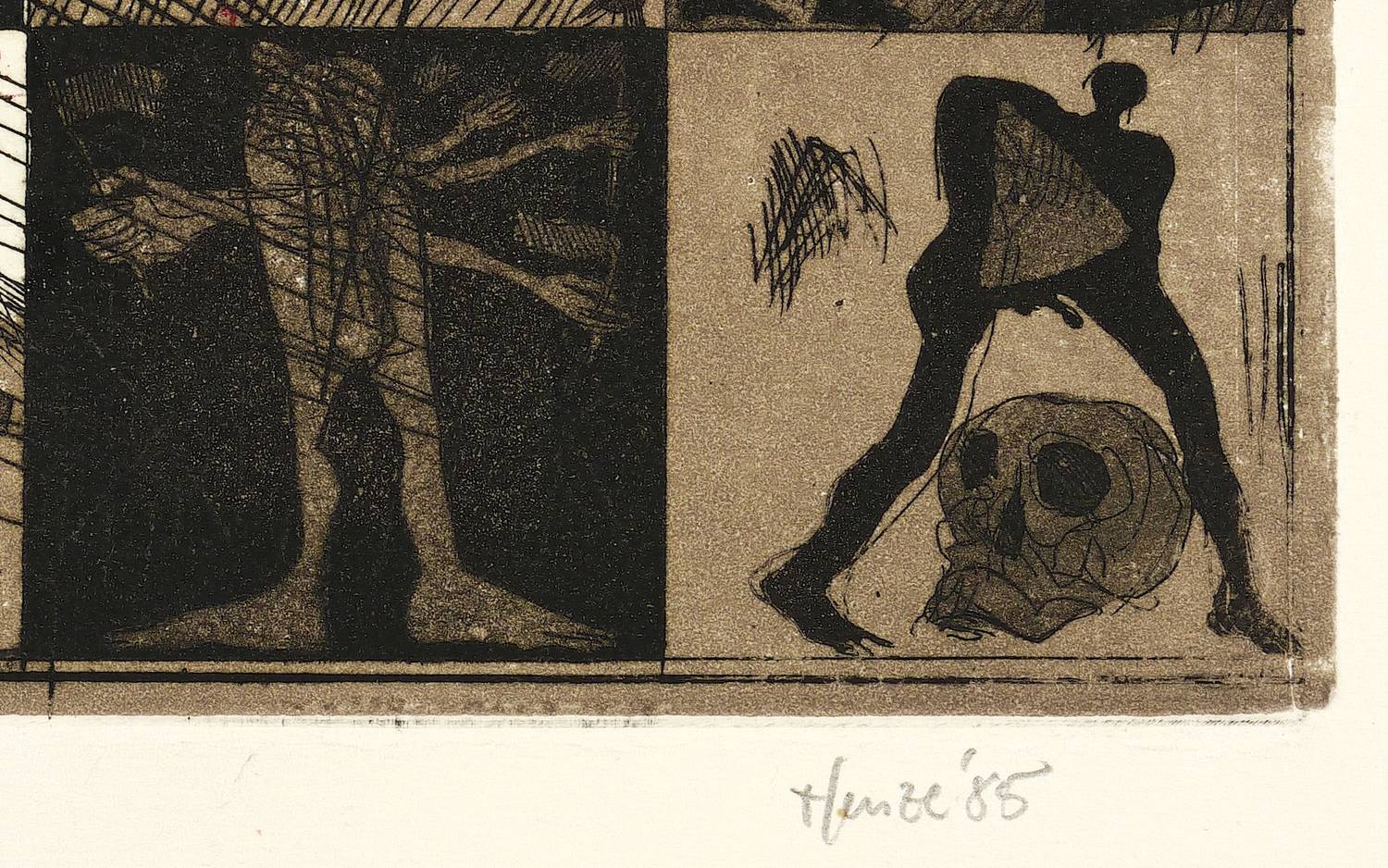 Rainer Henze (*1952 Leipzig, lebt und arbeitet in Halle / Saale). Deutscher Grafiker. 1959-71 Schulbesuch in Halle. 1973-78 Studium an der Kunsthochschule Burg Giebichenstein in Halle im Fachbereich Metall. Seit 1979 freiberuflich als Metallbildhauer und Grafiker tätig. Ab 1991 gemeinsame Metallbildhauerwerkstatt mit Cornelia Weihe, Friedemann Knappe und Thomas Leu. 1991 Kunstpreis Wesseling. 1995/96 Lehrtätigkeit an der Kunsthochschule Burg Giebichenstein Halle. Seit 1996 wieder freiberuflich tätig.