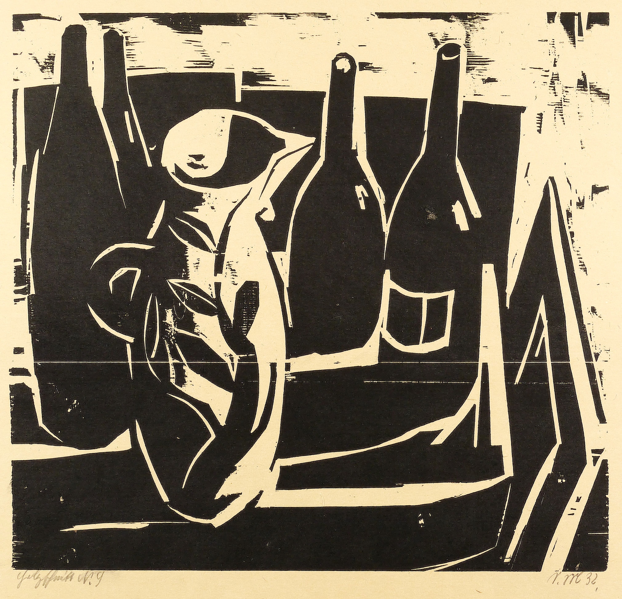 Deutscher Grafiker. – „Stillleben mit Flaschen und Krug”.
