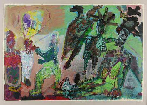 1990. Mischtechnik / Aquarell, Tusche, Farbkreide & Gouache, auf weißem Karton. – Originale Künstlergrafik, von Werner Liebmann. – Unikat. – 62,3 x 89,0 cm (Darstellung / Blatt).