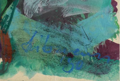 Rechts unten in blauer Farbkreide signiert und datiert: ″Liebmann '90″. Verso in schwarzer Kreide betitelt: ″Der Raum″. – Original vom Künstler auf Trägerkarton aufgezogen. Hervorragend erhalten. Sehr guter Zustand.