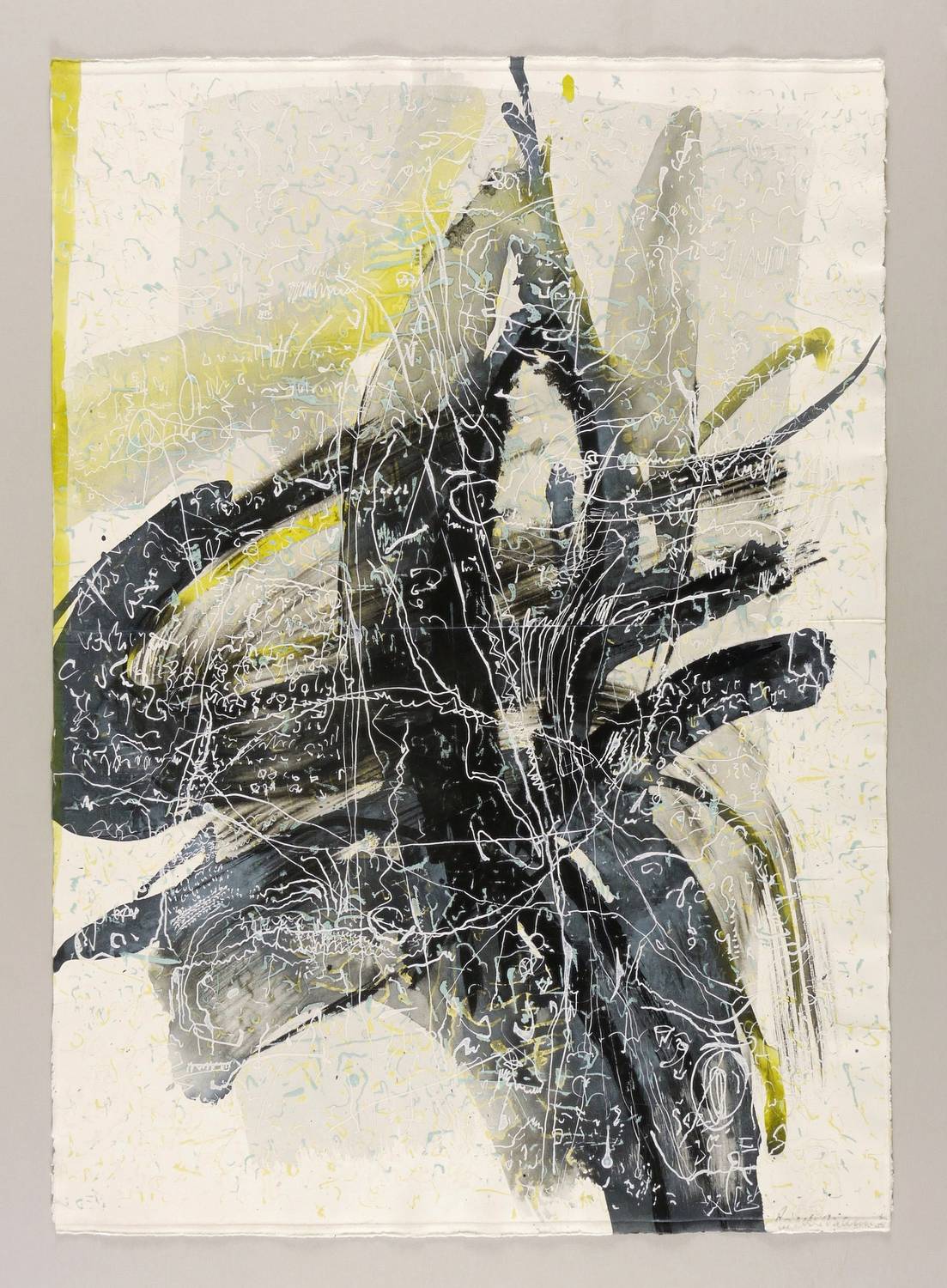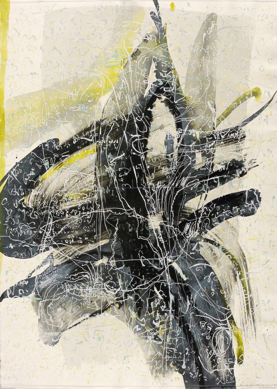 1989. Mischtechnik / Tusche, Aquarell & Deckfarben, auf schwerem hellchamois Hahnemühle. – Originale Künstlergrafik, von Wolfgang E. Biedermann. – Unikat. – 78,5 x 56,0 cm (Darstellung / Blatt).