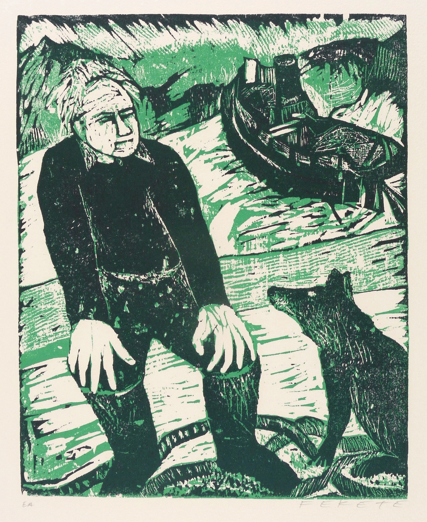 Esteban Fekete (1924 Cinkota / Budapest - 2009 Dieburg). Deutsch-argentinischer Maler, Zeichner und Grafiker. Arbeitete in verschiedenen Techniken wie Öl und Tempera, aber auch in Mischtechniken auf Papier, Holz oder Hartfaser. Anfang der 1970er Jahre entstanden Email-Bilder, Zeichnungen und Linolschnitt. Seine ureigene Technik ist allerdings der Holzschnitt, insbesondere der Farbholzschnitt, mit dem er sich einen Namen machte. So entwickelte er eine eigene Schnitt- und Bearbeitungstechnik für die Holzplatten. Für die Farbgebung verwendete er eigens dafür gesuchte Ölfarben.