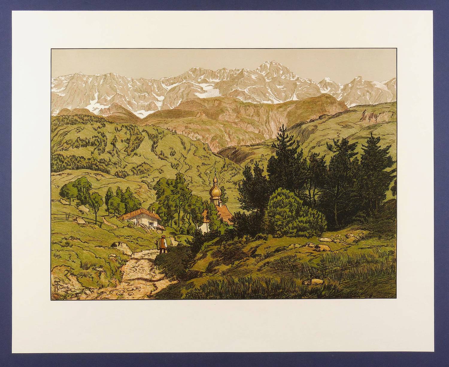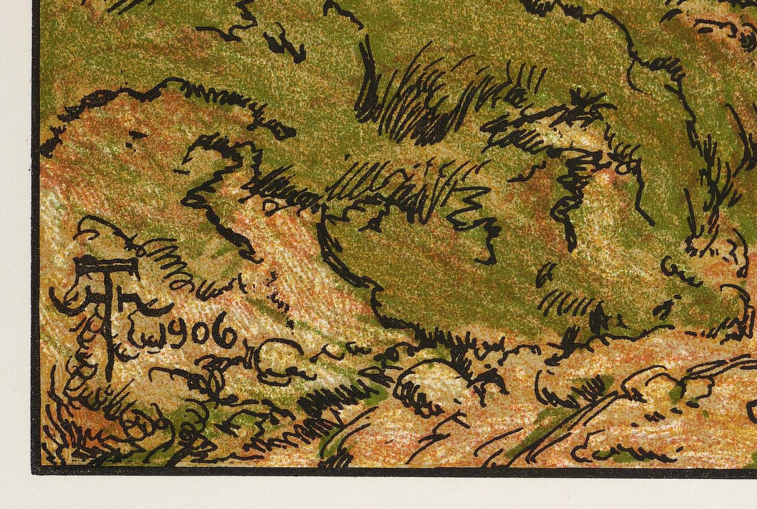 1906. Farblithografie / Feder- & Pinsellithografie, in 7 Farben, auf gelblichem Karton. – Originale Künstlergrafik, von Hans Thoma. – 43,7 x 60,2 cm (Darstellung / Druckbild), 60 x 73 cm (Blatt).