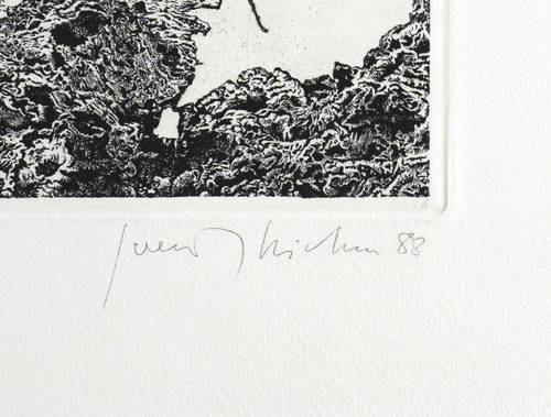 1988. Radierung / Strichätzung, in Schwarz, auf hellchamois Hahnemühle. – Originale Künstlergrafik, von Gerenot Richter. – Auflage Exemplar Nr. II/VIII. – 49,4 x 64,6 cm (Darstellung / Platte), 64 x 78 cm (Blatt).