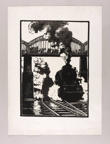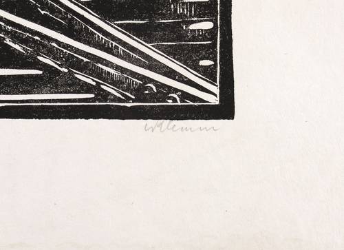 1910-1920. Holzschnitt, in Schwarz, auf hellgelbem Velin. – Originale Künstlergrafik, von Walther Klemm. – 37,8 x 50,4 cm (Darstellung / Druckstock), 51 x 65 cm (Blatt).