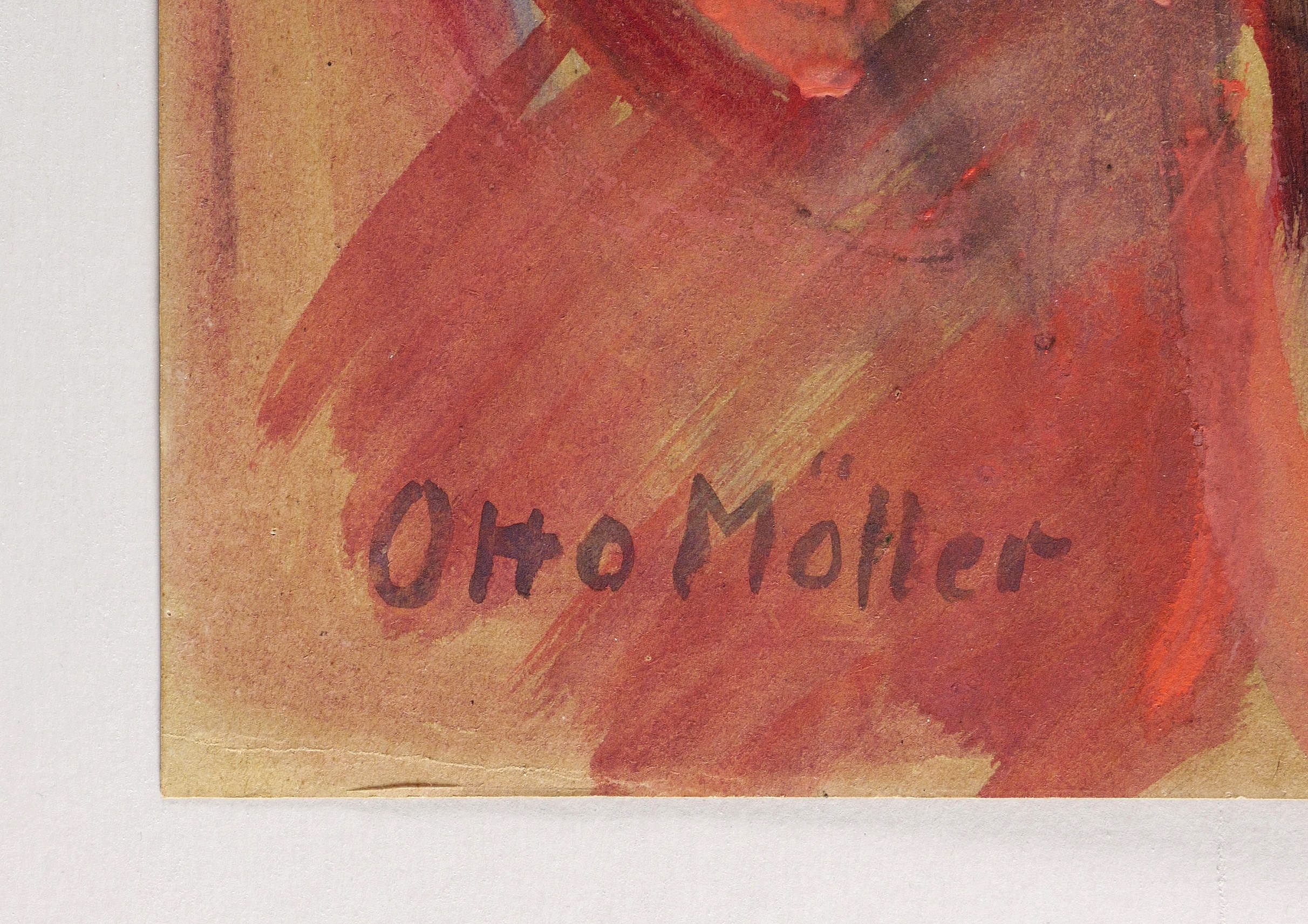Links unten mit Pinsel signiert: ″OTTO MÖLLER″. – Sehr gute Gesamterscheinung. Ecke rechts oben mit geringem Substanzverlust. Winziger Randriss im rechten Rand unten hinterlegt. Insgesamt guter Zustand.