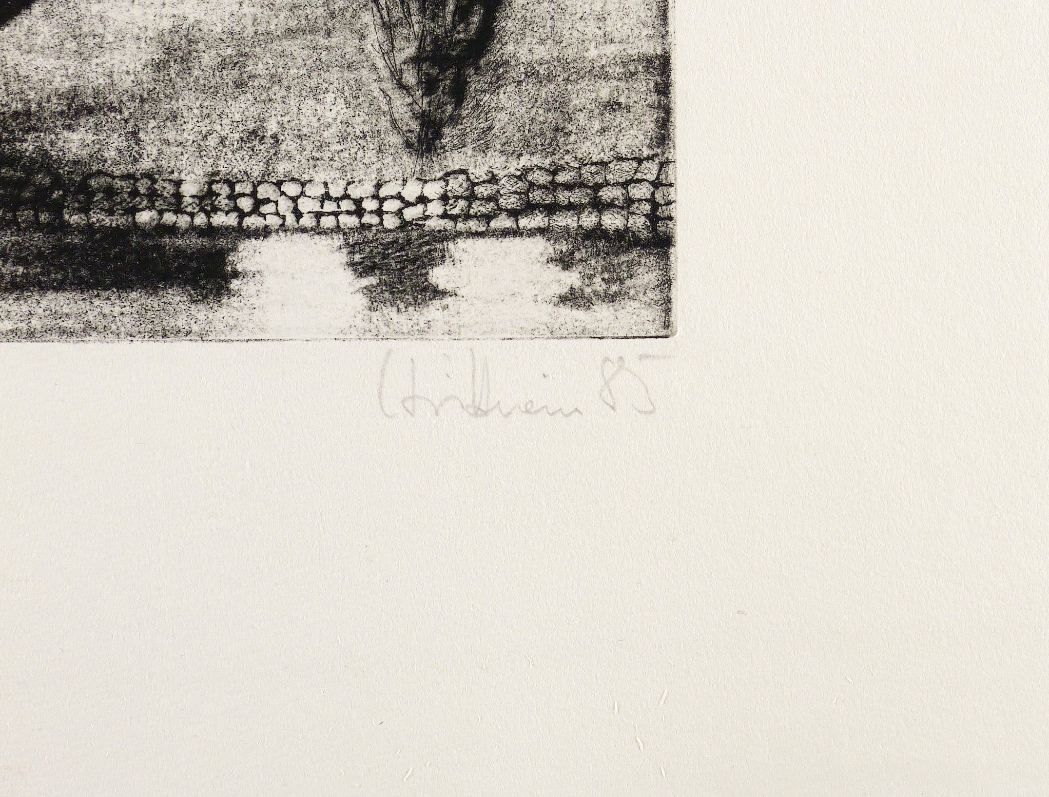 1985. Radierung / Vernis mou, in Schwarz, auf weichem hellchamois Büttenkarton. – Originale Künstlergrafik, von Christine Littwin. – Auflage Exemplar Nr. 15/20. – 20,4 x 24,8 cm (Darstellung / Platte), 40 x 54 cm (Blatt).