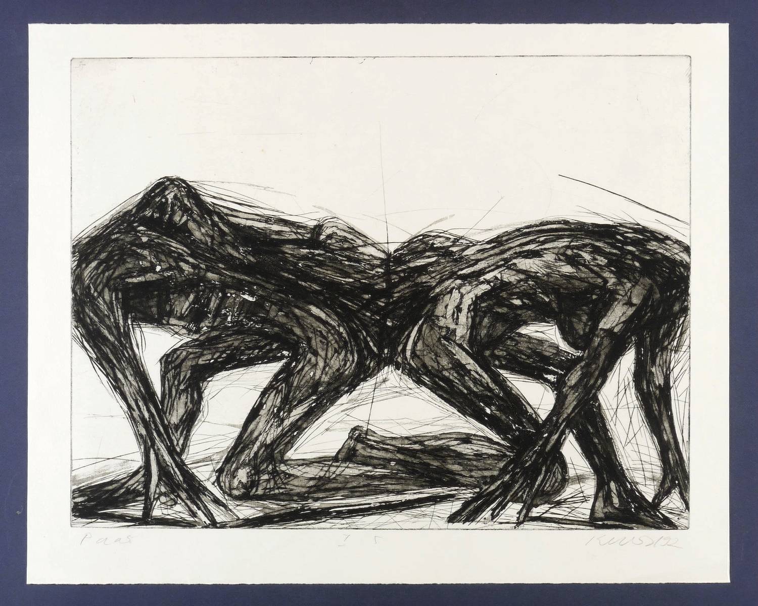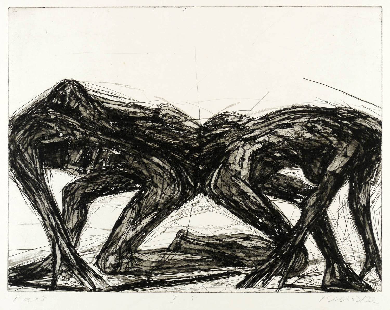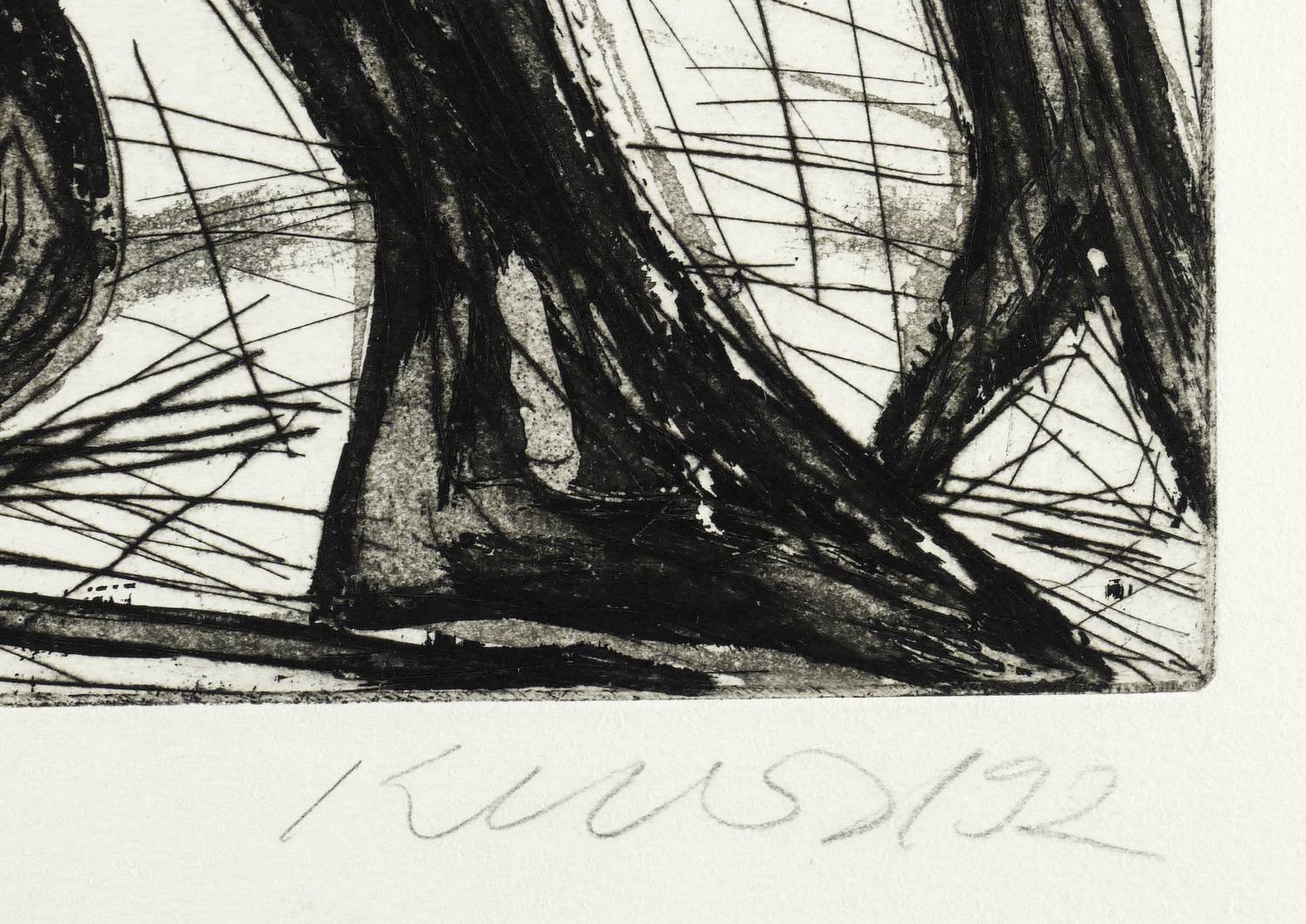 1992. Radierung / Kaltnadel & Aquatinta, in Schwarz, auf hellgelbem Büttenkarton. – Von Rolf Kuhrt. – Auflage Exemplar Nr. 1/5. – 49,5 x 64,5 cm (Darstellung / Platte), 58 x 73 cm (Blatt).