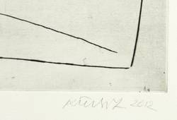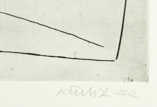 2012. Radierung / Kaltnadel, mit Plattenton, in Schwarz, auf hellchamois Velinkarton. – Originale Künstlergrafik, von Rolf Kuhrt. – Auflage Exemplar Nr. 3/5. – 49,8 x 64,5 cm (Darstellung / Platte), 58 x 72 cm (Blatt).