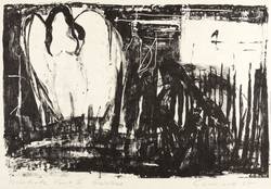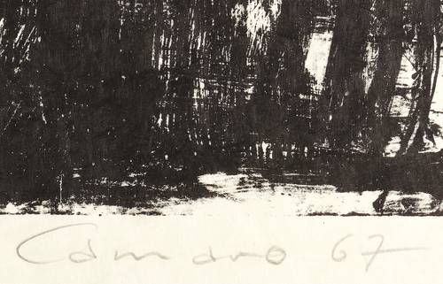 1967. Lithografie / Pinsellithografie, partiell geschabt, in Schwarz, auf kräftigem Japanpapier. – Originale Künstlergrafik, von Alexander Camaro. – Probedruck. – 39,4 x 59,4 cm (Darstellung / Druckbild), 45 x 61 cm (Blatt).