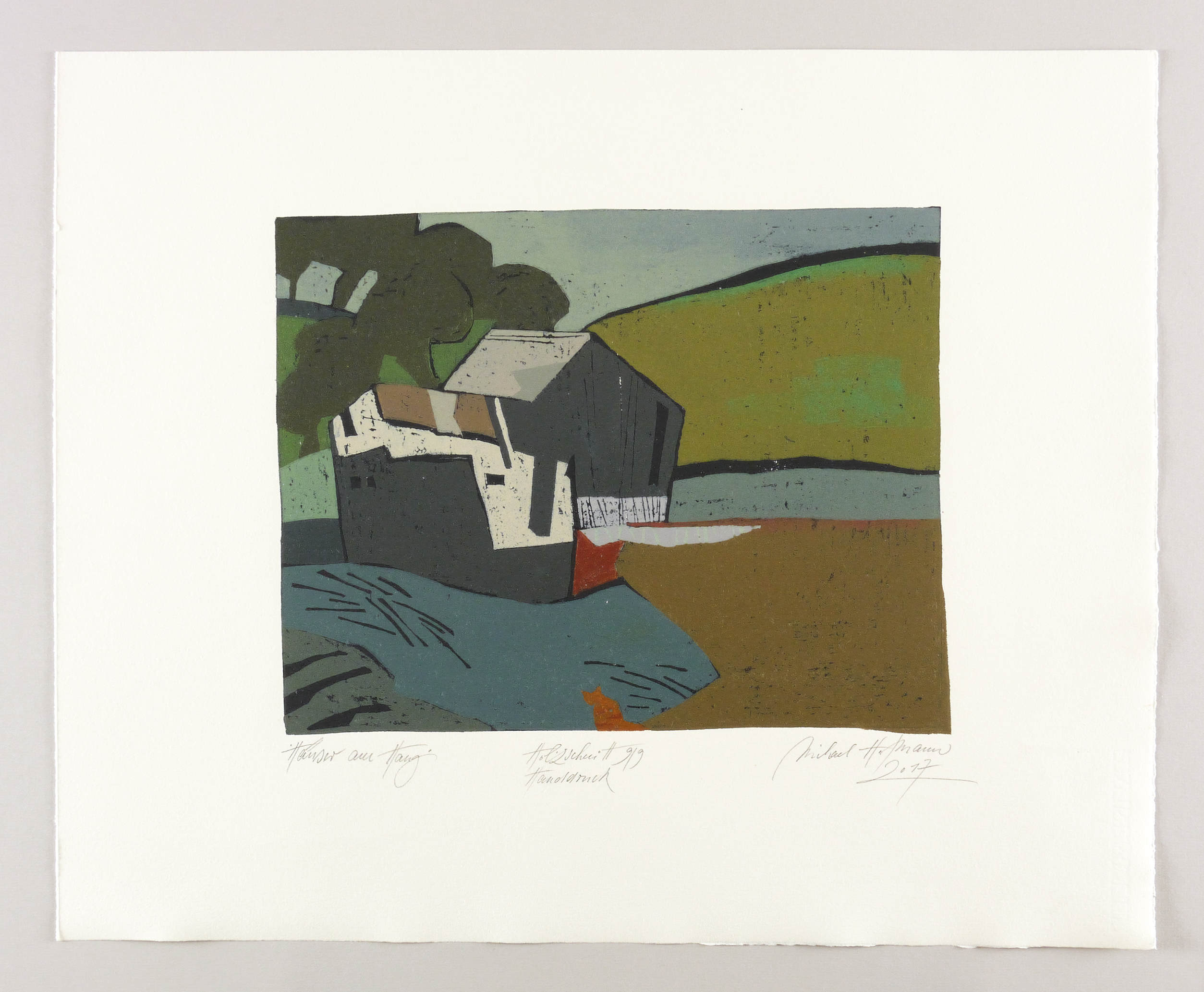 2017. Farbholzschnitt, auf Bütten. – Originale Künstlergrafik, von Michael Hofmann. – Auflage Exemplar Nr. 9/9. – 31,3 x 39,7 cm (Darstellung / Druckstock), 53,5 x 66 cm (Blatt).