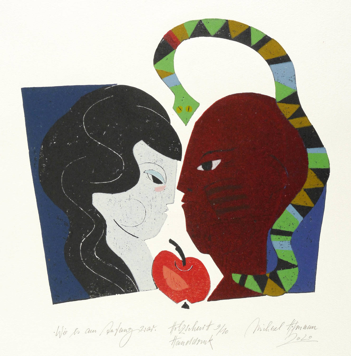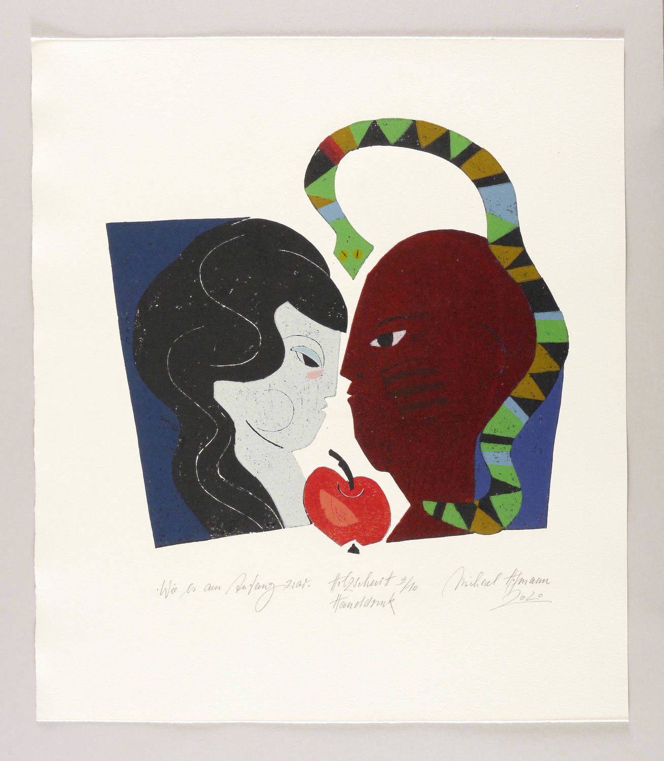 2020. Farbholzschnitt, auf Bütten. – Originale Künstlergrafik, von Michael Hofmann. – Auflage Exemplar Nr. 9/10. – 38,9 x 41,4 cm (Darstellung / Druckstock), 61 x 53 cm (Blatt).