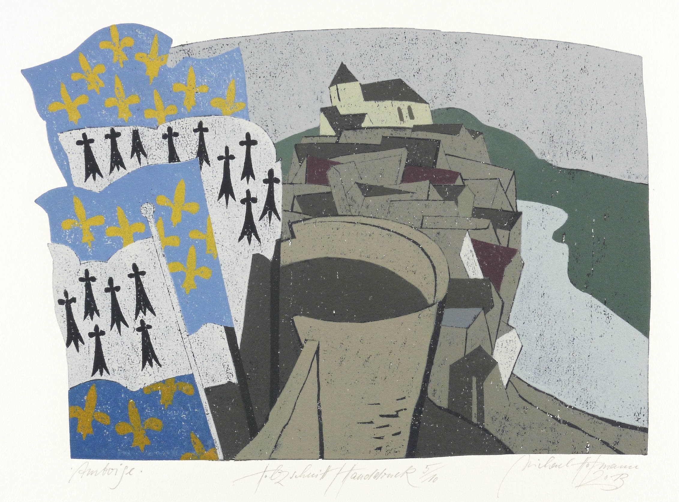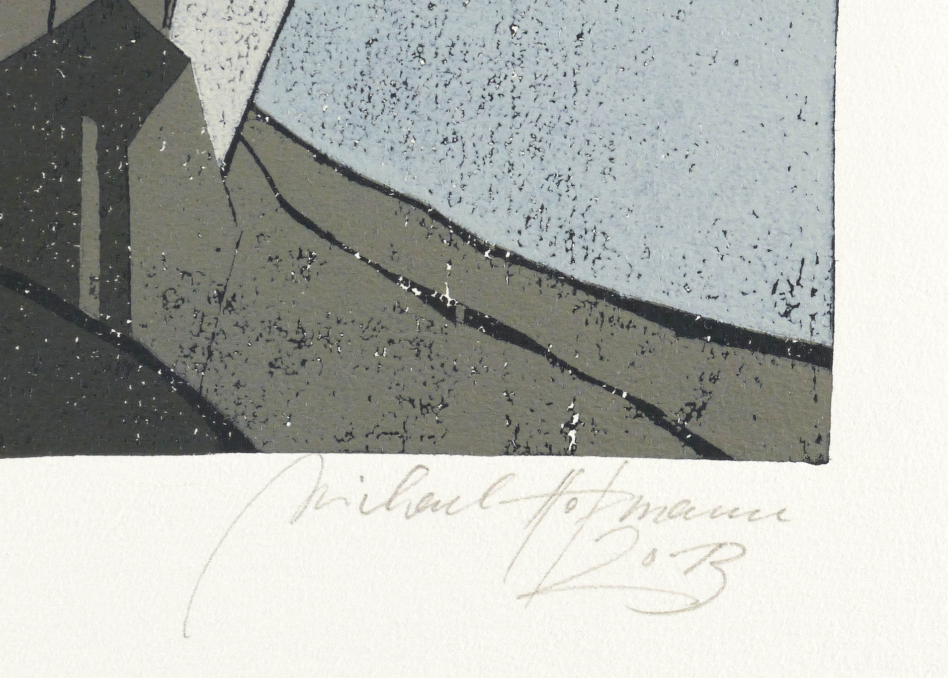 2013. Farbholzschnitt, auf Bütten. – Originale Künstlergrafik, von Michael Hofmann. – Auflage Exemplar Nr. 5/10. – 33,0 x 46,9 cm (Darstellung / Druckstock), 53 x 67 cm (Blatt).