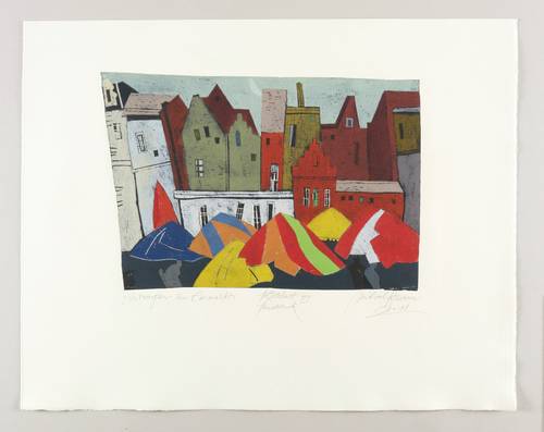 2018. Farbholzschnitt, auf Bütten. – Originale Künstlergrafik, von Michael Hofmann. – Auflage Exemplar Nr. 4/9. – 28,9 x 43,4 cm (Darstellung / Druckstock), 53,5 x 67,5 cm (Blatt).