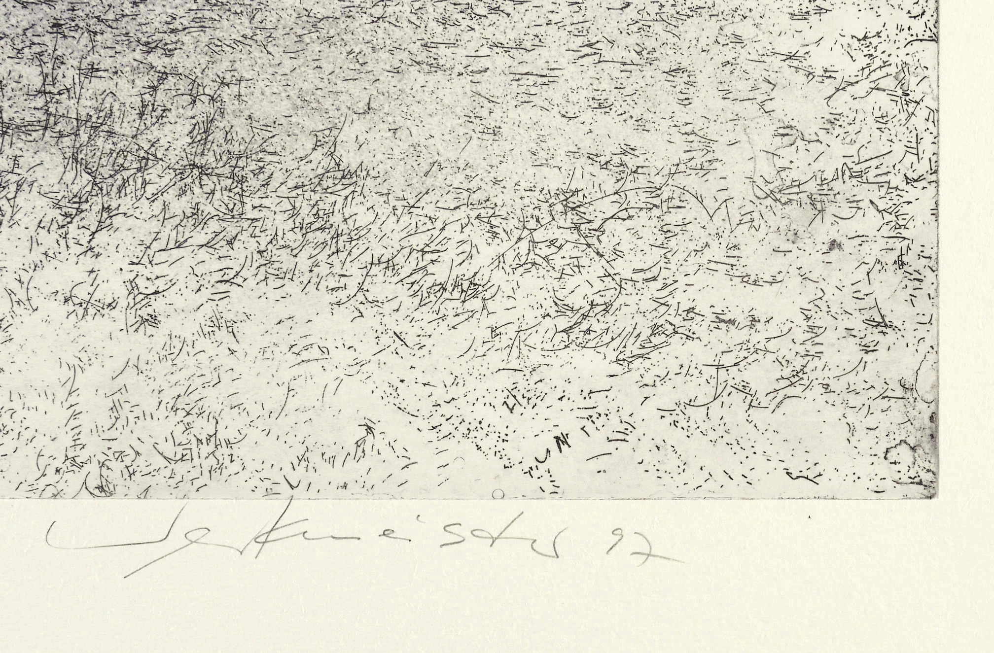 1997. Radierung / Strichätzung & Aquatinta, partiell geschliffen, in Schwarz, auf Hahnemühle-Bütten. – Von Wolfgang Werkmeister. – Auflage Exemplar Nr. 33/85. – 38,5 x 57,6 cm (Darstellung / Platte), 59,5 x 79 cm (Blatt).