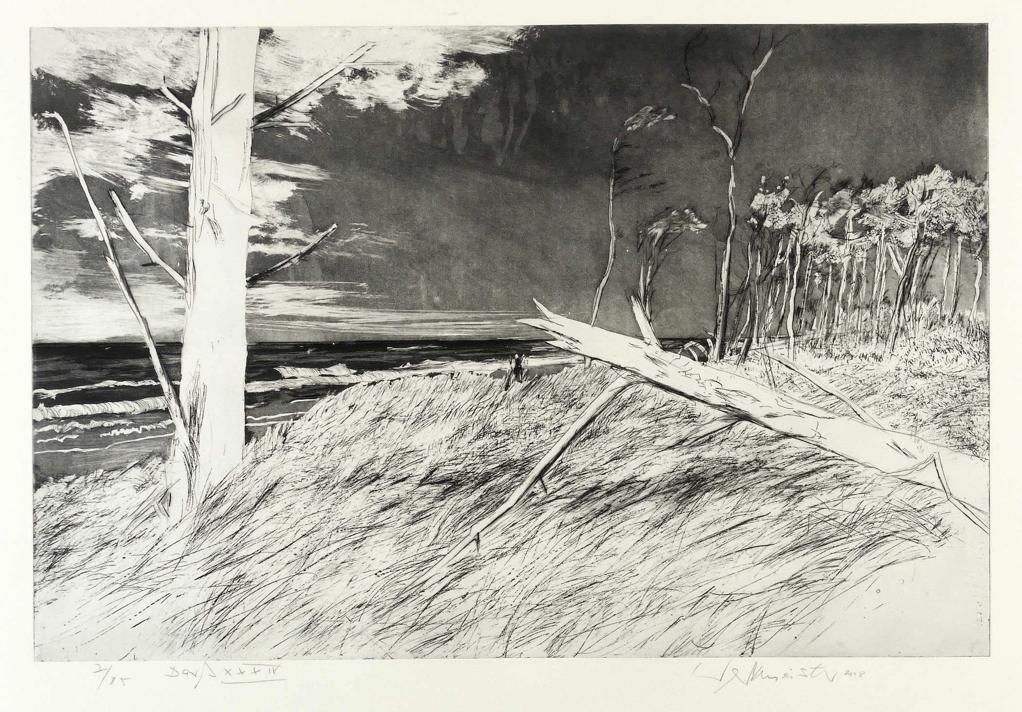 Werkmeister II 721. – Rechts unten in Bleistift signiert und datiert. Links Auflagenbezeichnung und Titel. Im rechten unteren Rand Prägestempel: ″Druck Werkmeister″. – Im Werkverzeichnis mit ″Darß XXXV″ betitelt. – Sehr guter Zustand.