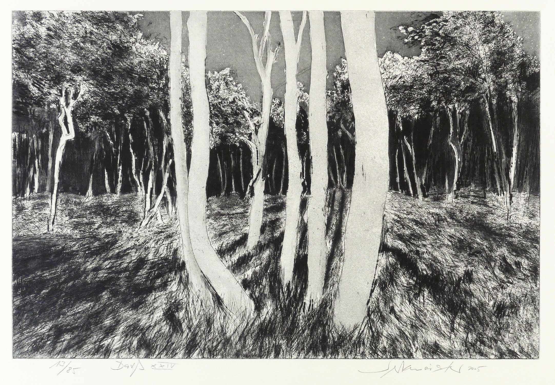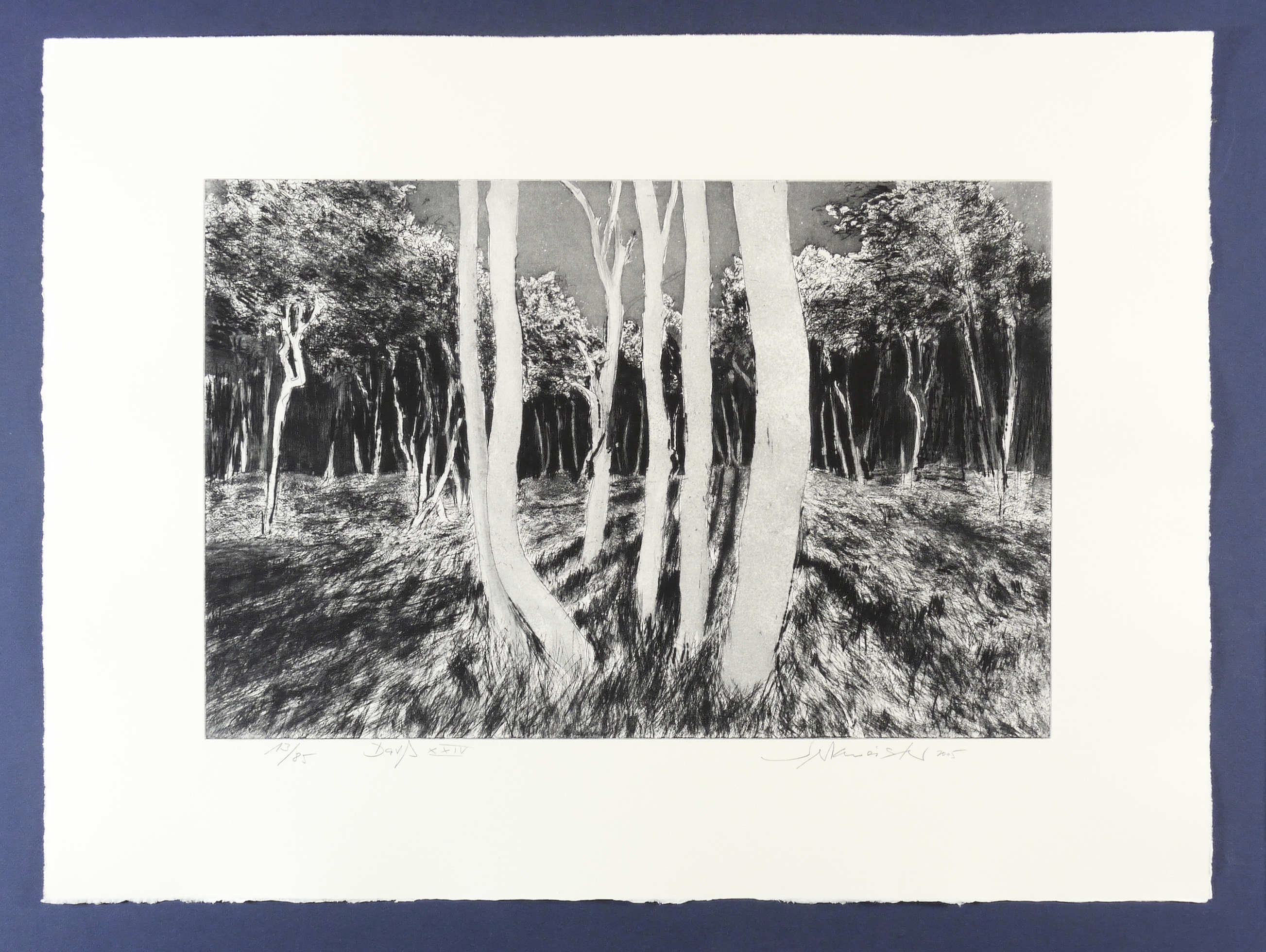 2005. Radierung / Strichätzung & Aquatinta, in Schwarz, auf hellchamois Hahnemühle-Bütten. – Von Wolfgang Werkmeister. – Auflage Exemplar Nr. 13/85. – 37,8 x 57,3 cm (Darstellung / Platte), 58,5 x 79 cm (Blatt).