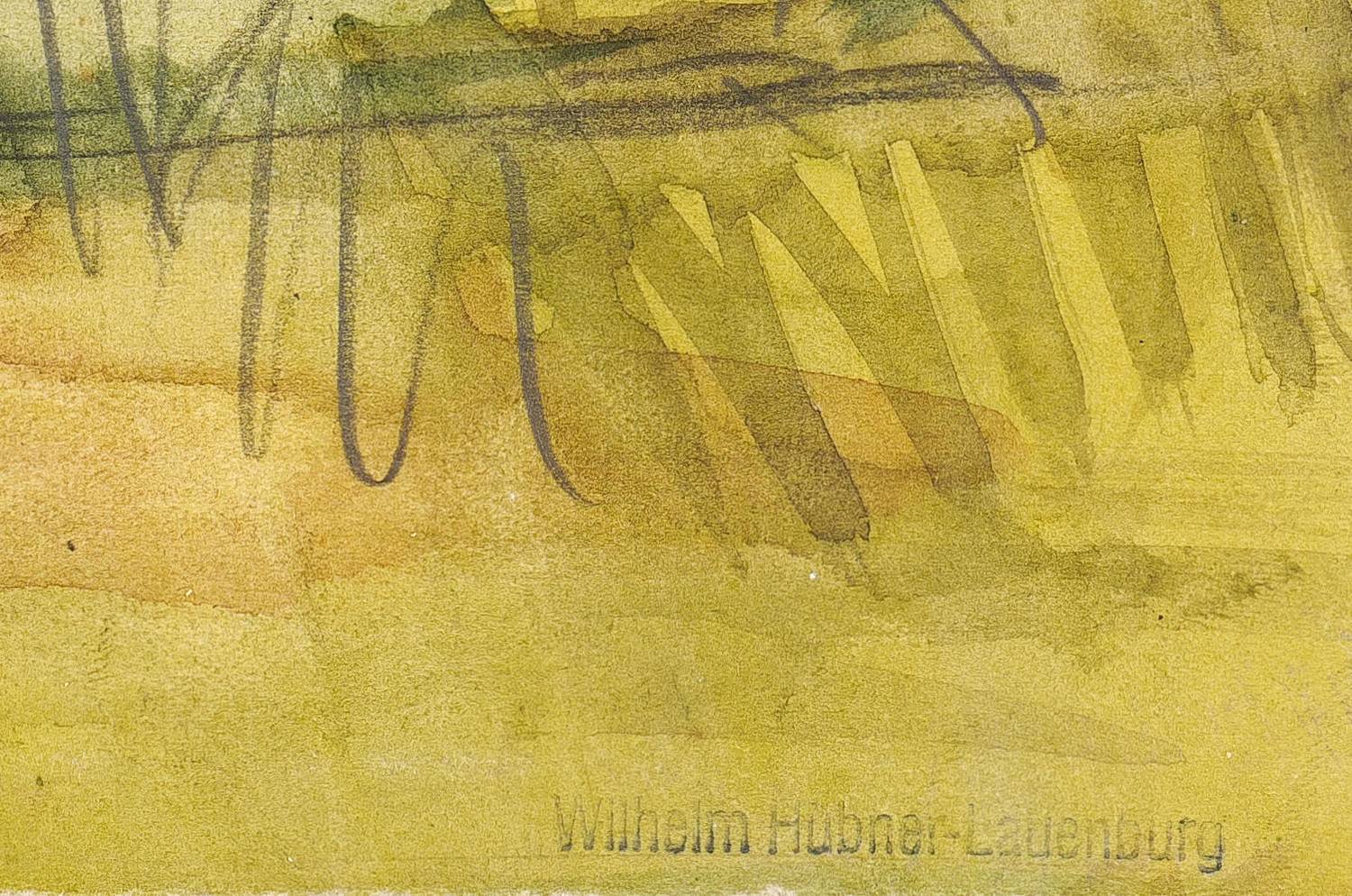 Um 1930. Aquarell, über Bleistift, auf Karton. – Originale Künstlergrafik, von Wilhelm Hübner-Lauenburg. – Unikat. – 21,7 x 32,9 cm (Darstellung / Blatt).