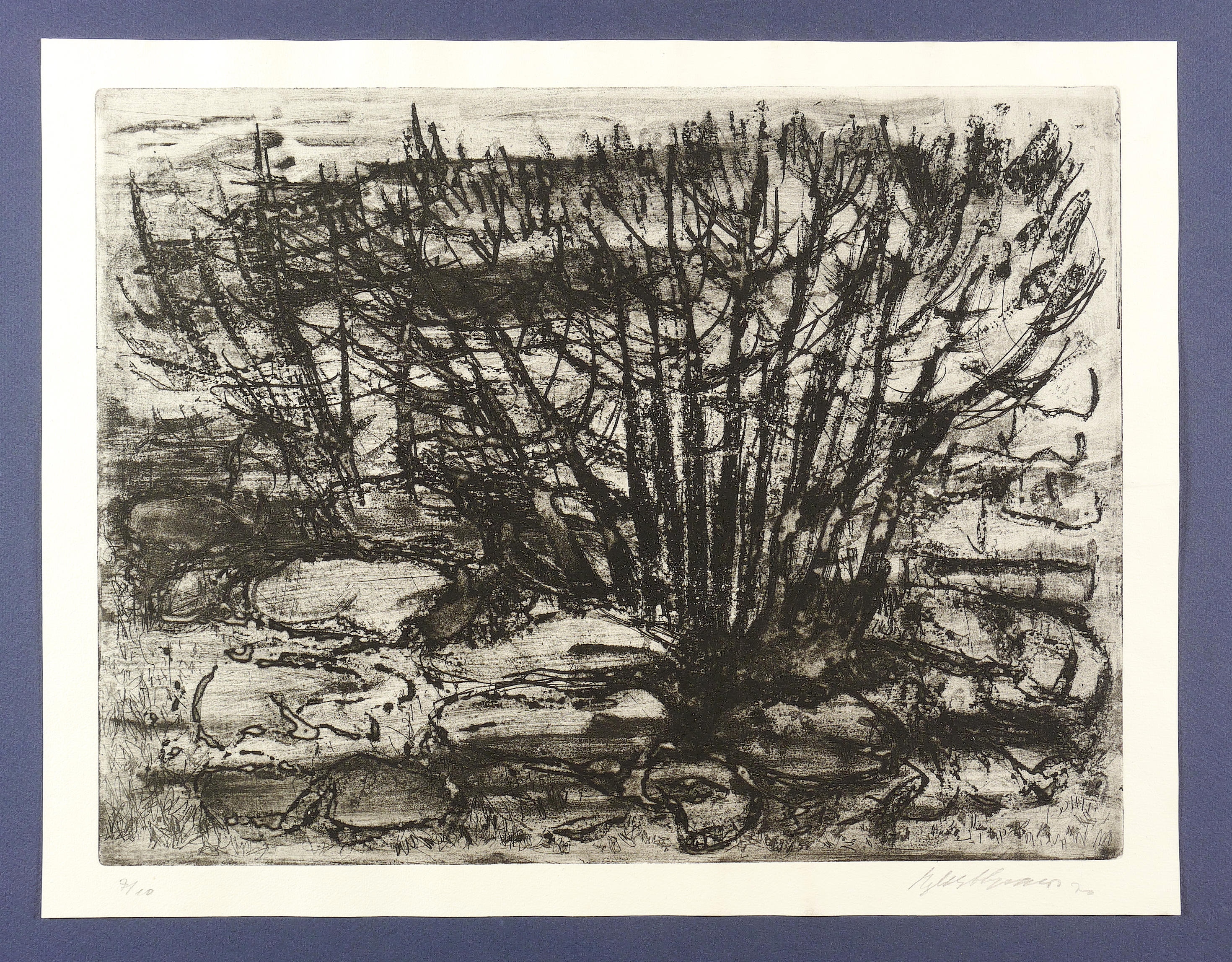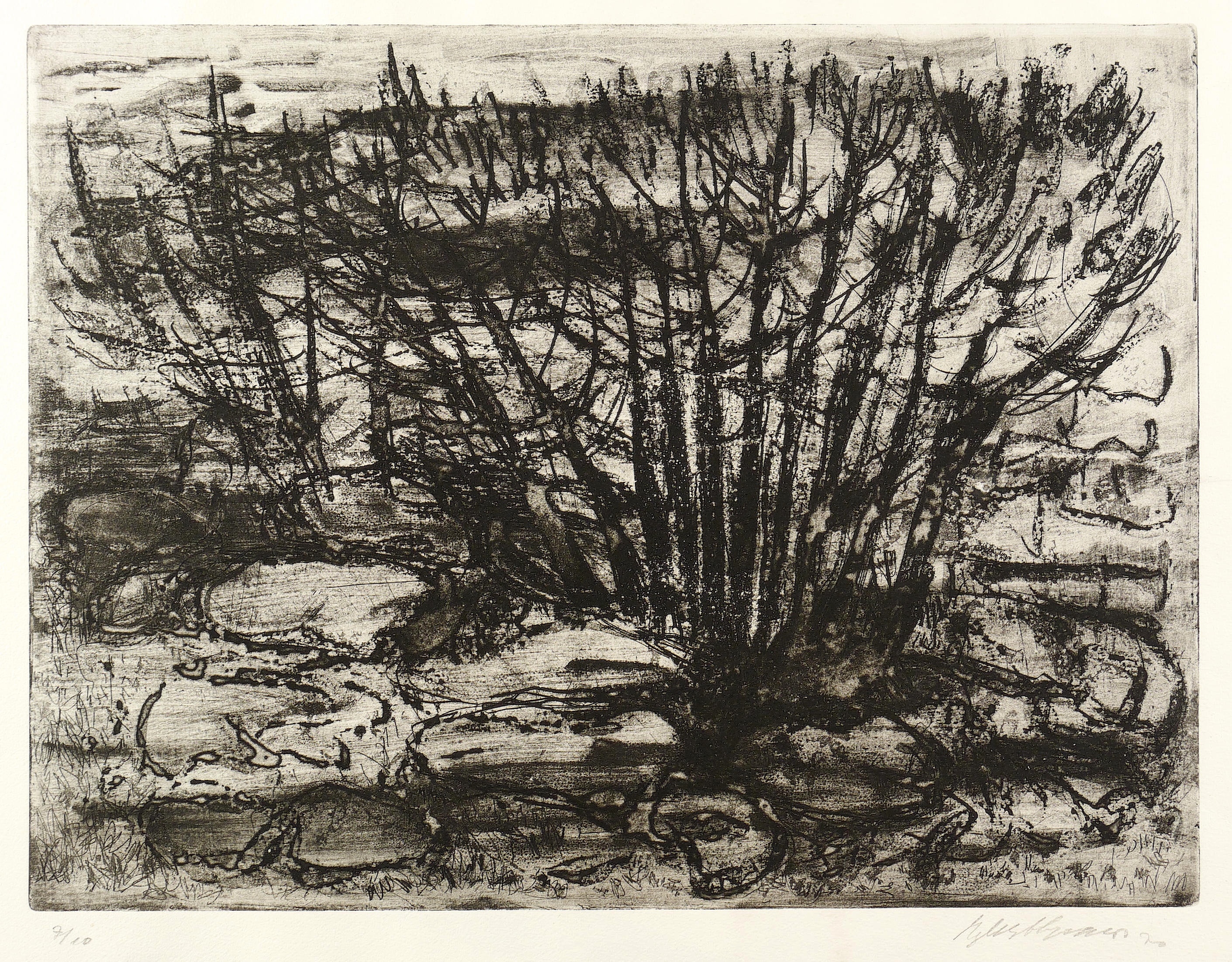 1970. Radierung / Reservage, in Schwarz, mit Plattenton, auf Büttenkarton. – Originale Künstlergrafik, von Eylert Spars. – Auflage Exemplar Nr. 7/10. – 29,7 x 39,3 cm (Darstellung / Platte), 34 x 45 cm (Blatt).