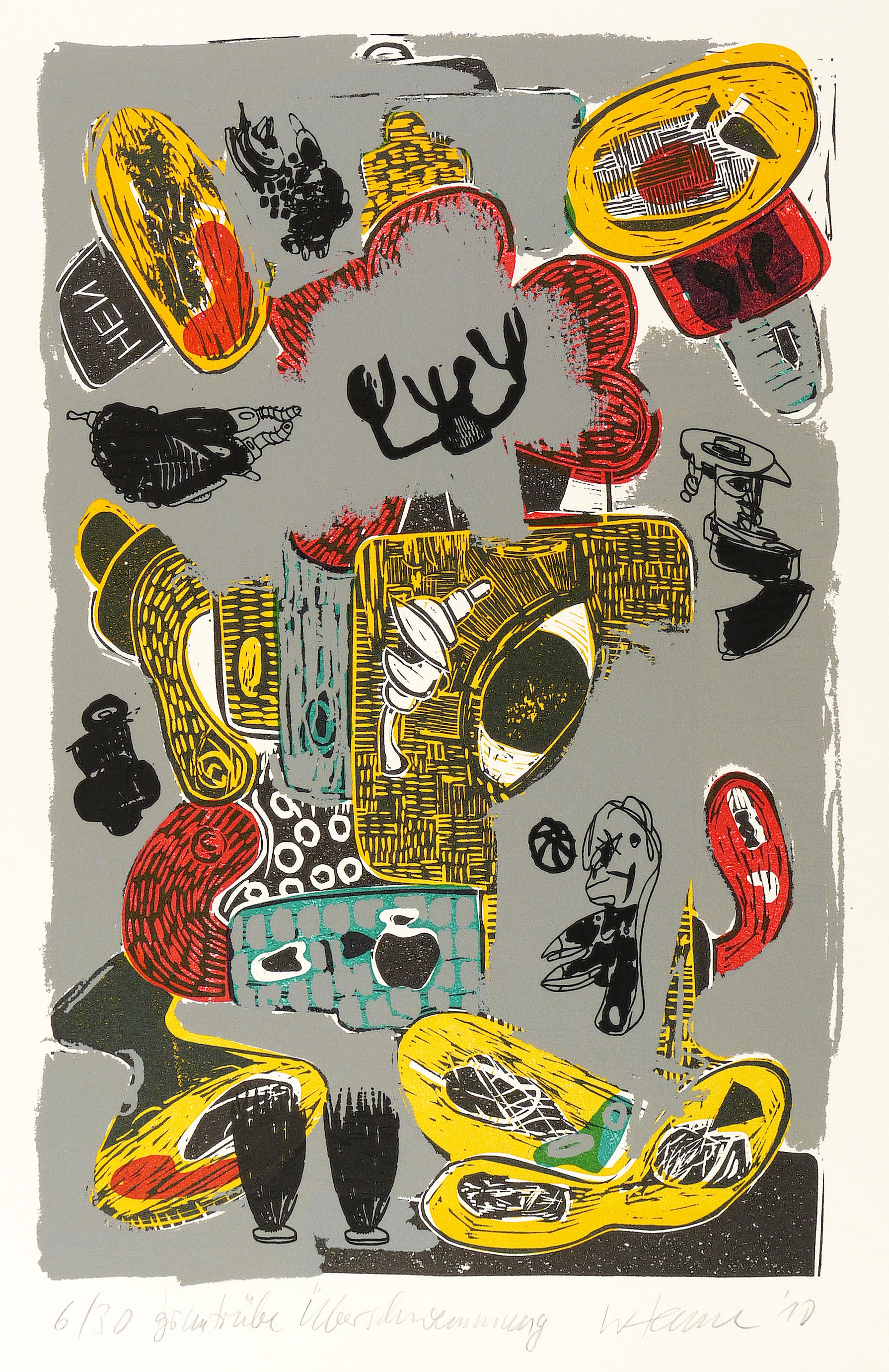 2010. Farblithografie / Feder- & Pinsellithografie, in 5 Farben, auf weißem Karton. – Originale Künstlergrafik, von Wolfgang Henne. – Auflage Exemplar Nr. 6/30. – 28,7 x 22,1 cm (Darstellung), 64 x 45 cm (Blatt).