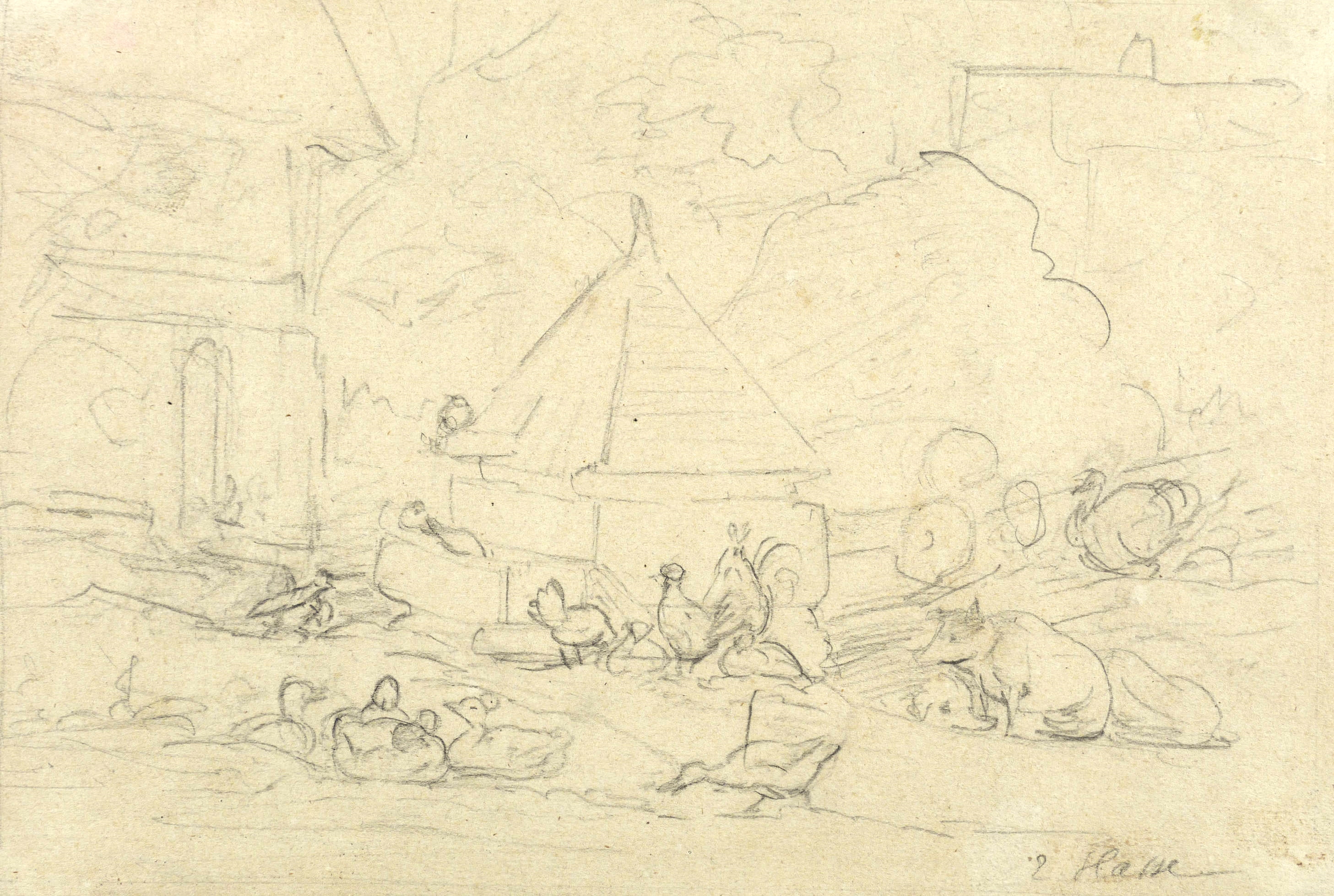 Hasse, Ernst. – „Bauernhof mit Enten, Hühnern und Schweinen”.