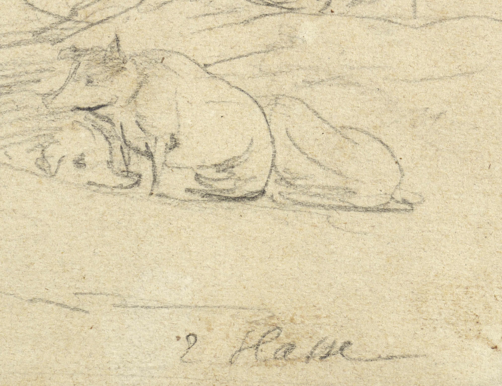 1840-1850. Zeichnung / Bleistiftzeichnung, auf gelbem Velin. – Originale Künstlergrafik, von Ernst Hasse. – Unikat. – 15,6 x 22,9 cm (Darstellung / Blatt).