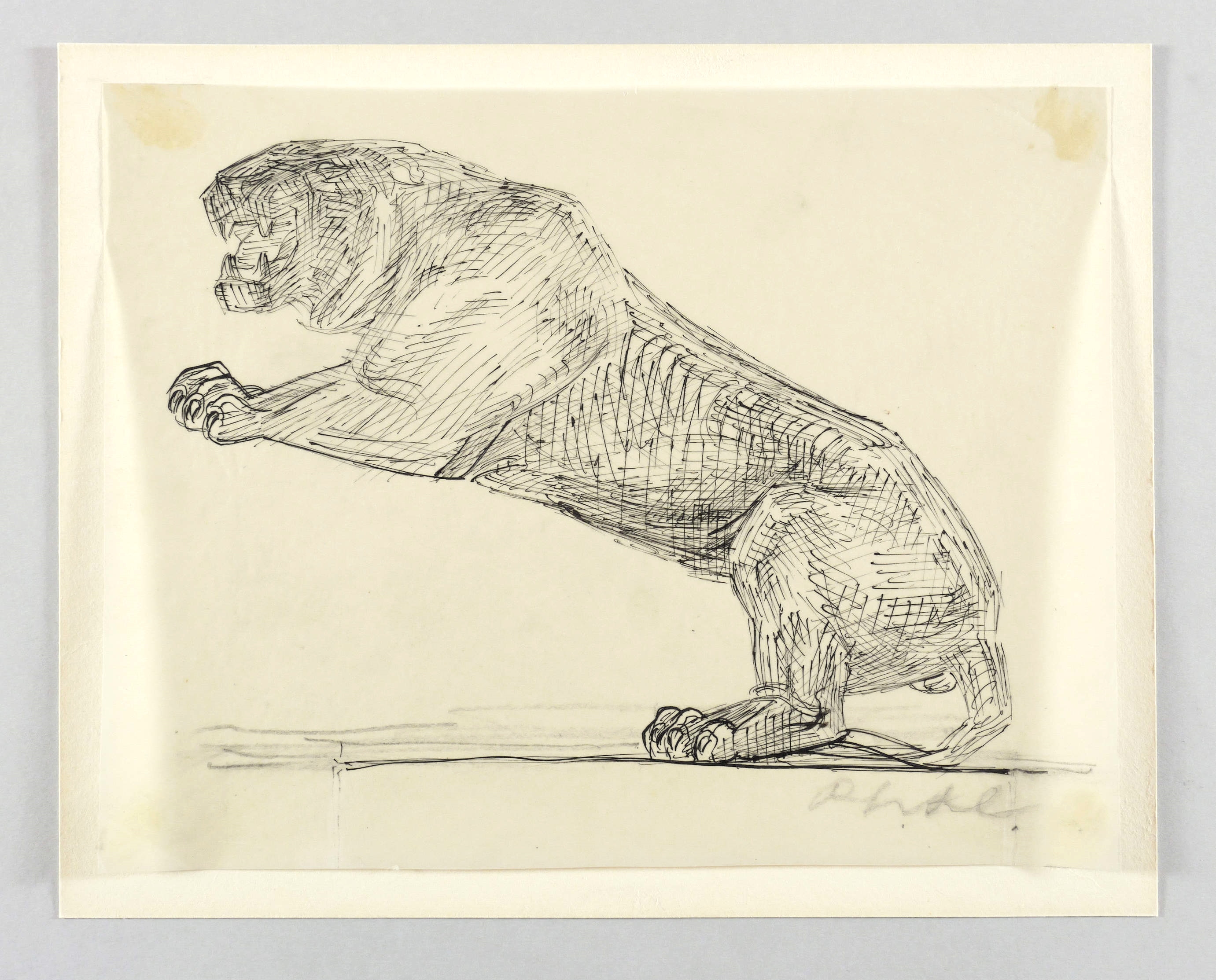 1930-1940. Zeichnung / Federzeichnung, in schwarzer Tusche, auf Transparentpapier. – Originale Künstlergrafik, von Philipp Harth. – Unikat. – 17,8 x 24,6 cm (Darstellung), 22 x 28 cm (Blatt), 24,5 x 30,5 cm (Trägerkarton).