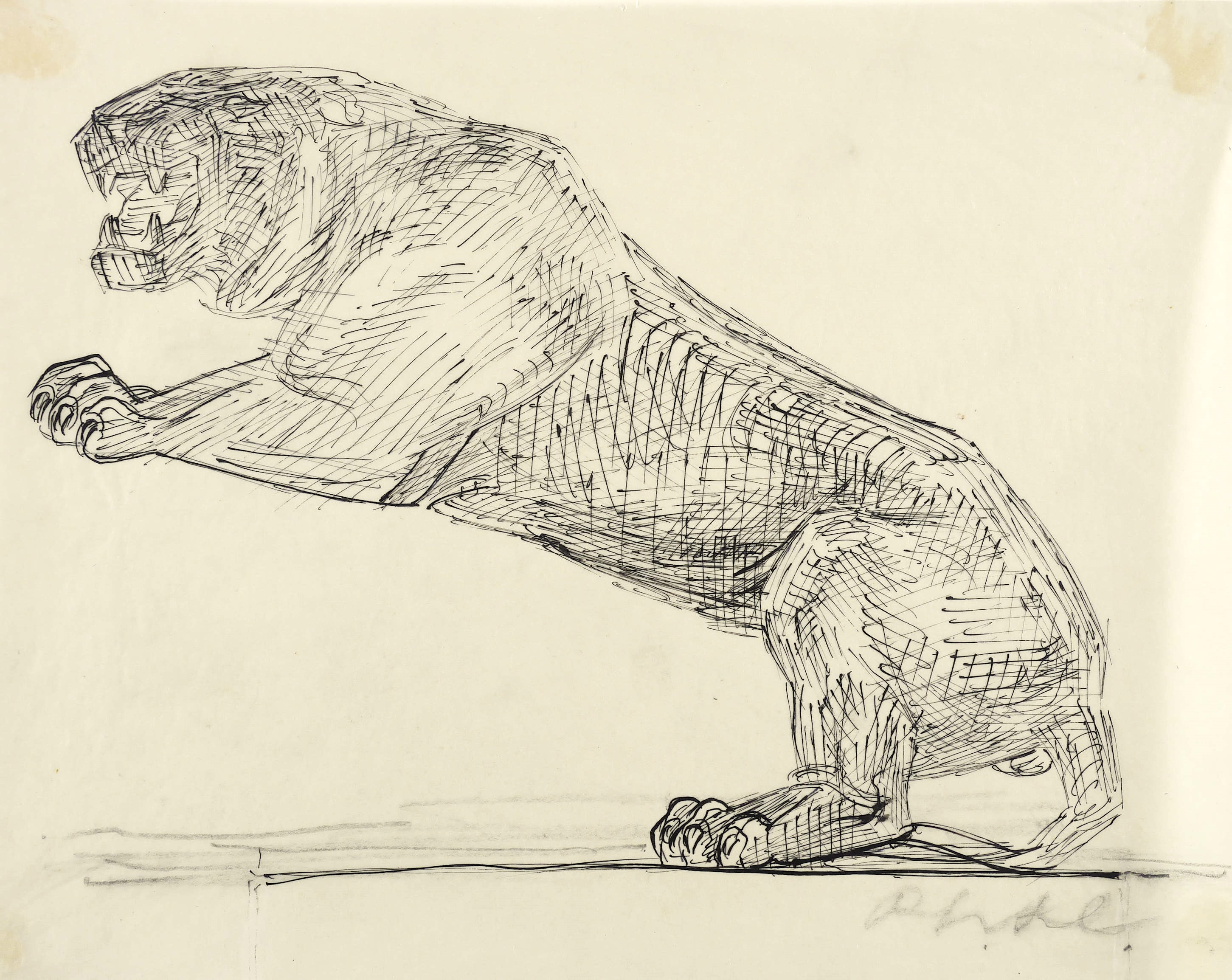 Philipp Harth (1885 Mainz - 1968 Bayrischzell). Deutscher Bildhauer, Zeichner und Kunstschriftsteller. Ausbildung im väterlichen Steinmetzbetrieb als Steindrucker und an der Kunstgewerbeschule in Mainz. 1901-03 Bildhauerlehre in Mainz und Karlsruhe. 1908 Malunterricht an der Kunstakademie in Karlsruhe. 1908-09 Aufenthalt in München, Worpswede und Mainz, tätig als Lehrer an der Kunstgewerbeschule Mainz. Nach Rückkehr als Schwerverletzer aus dem 1. Weltkrieg 1917 Studium an der Kunstgewerbeschule Charlottenburg bei Hans Perathoner. Danach Mitarbeiter an der Odenwaldschule als Lehrer für Kunsterziehung. Studienreisen nach Italien und Frankreich. Mitglied der Berliner Secession. 1941 Zerstörung eines Großteil seines Werkes durch einen Bombenangriff. Freundschaft mit George Grosz, Erich Heckel, Emil Nolde und Karl Schmidt-Rottluff sowie mit den Bildhauern und Architekten Georg Kolbe, Kurt Lehmann, Gustav Seitz, Mies van der Rohe und Hermann Muthesius. Von Beginn an Beschäftigung mit Tierdarstellungen. Ab 1925 vollständige Widmung der Tierplastik. Streng stilisierte jedoch naturnahe Formgebung.