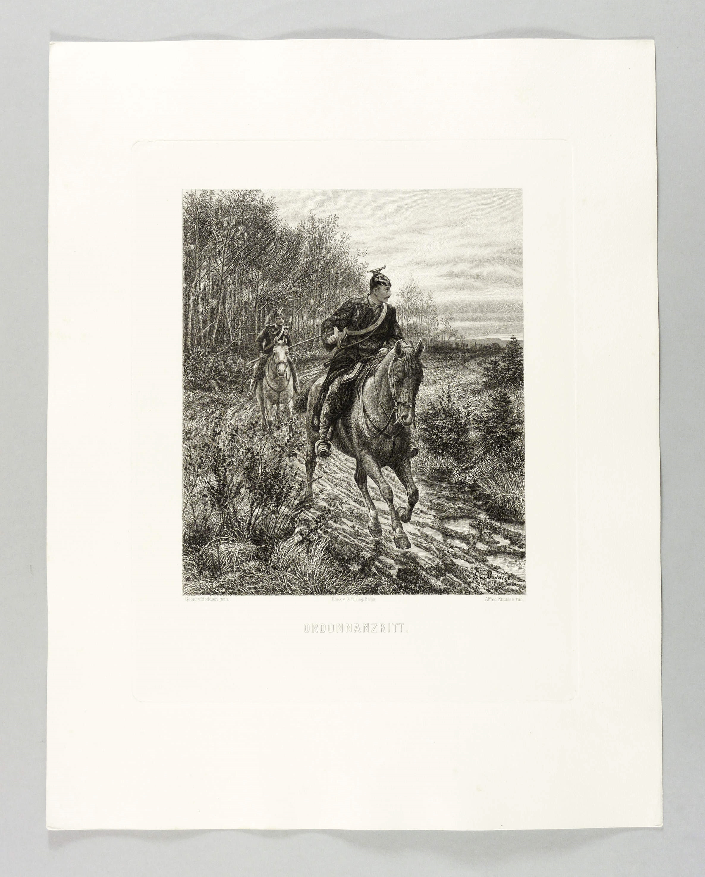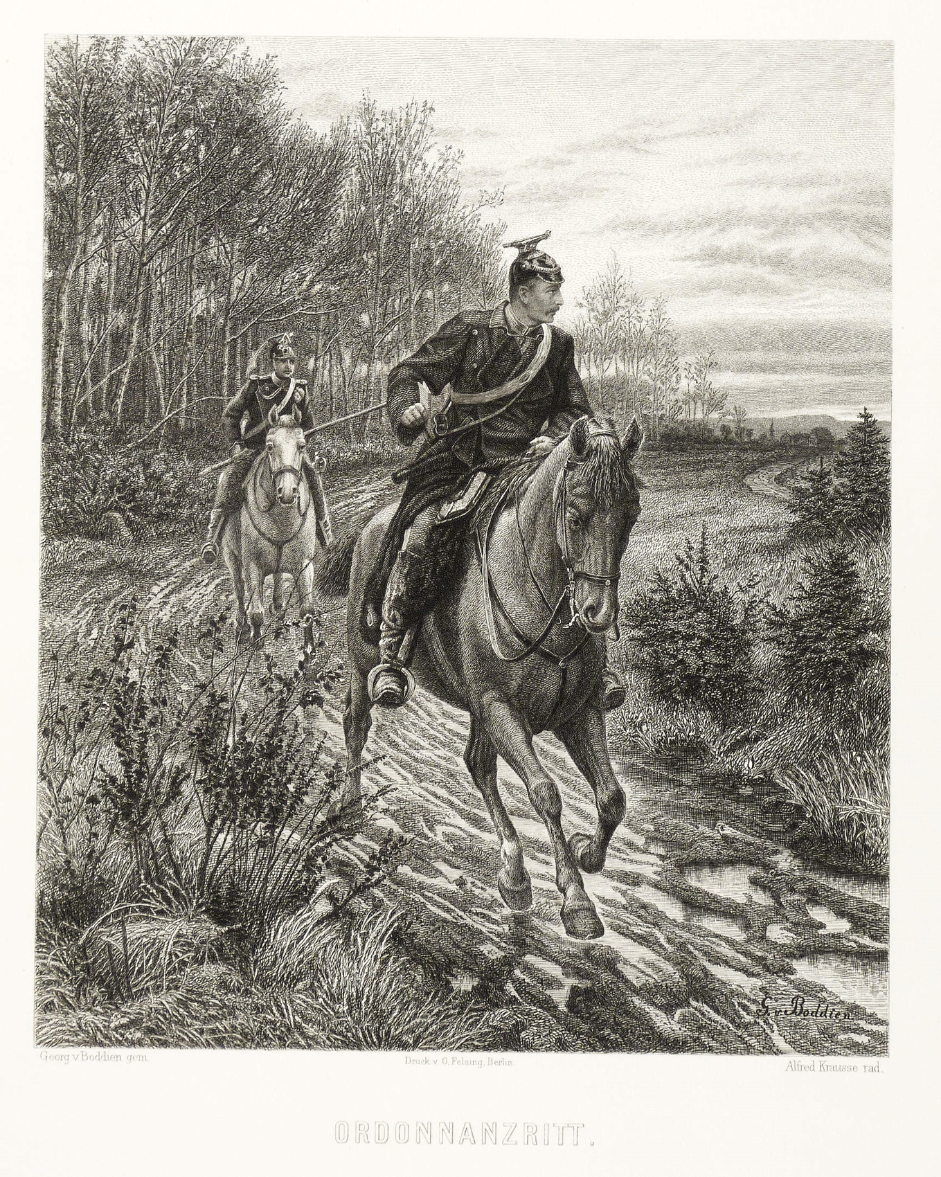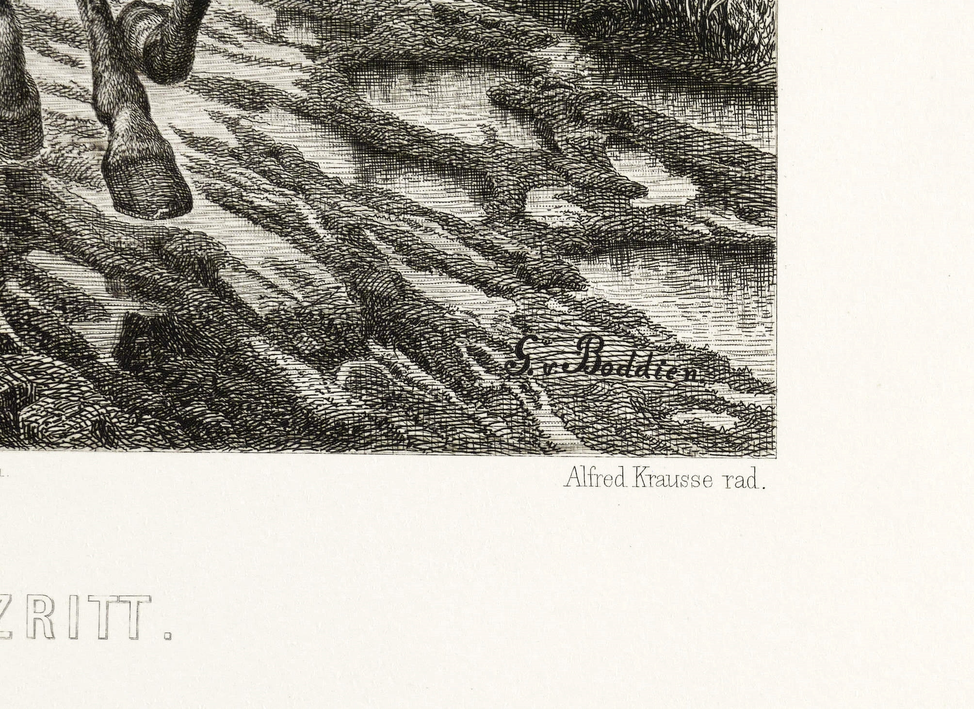 Aus: Vereinsgeschenk des Sächsischen Kunstvereins auf das Jahr ... (Dresden: Sächsischer Kunstverein 1893), Bd. 11. – In der Platte rechts unten gestochene Signatur: "Alfred Krausse rad." Darüber in der Darstellung wiedergegebene Signatur des wiedergegebenen Gemäldes: "G. v. Boddien". Mittig Druckeradresse von Otto Felsing, Berlin. Darunter Titel. – Ohne Mängel. Sehr guter Zustand.