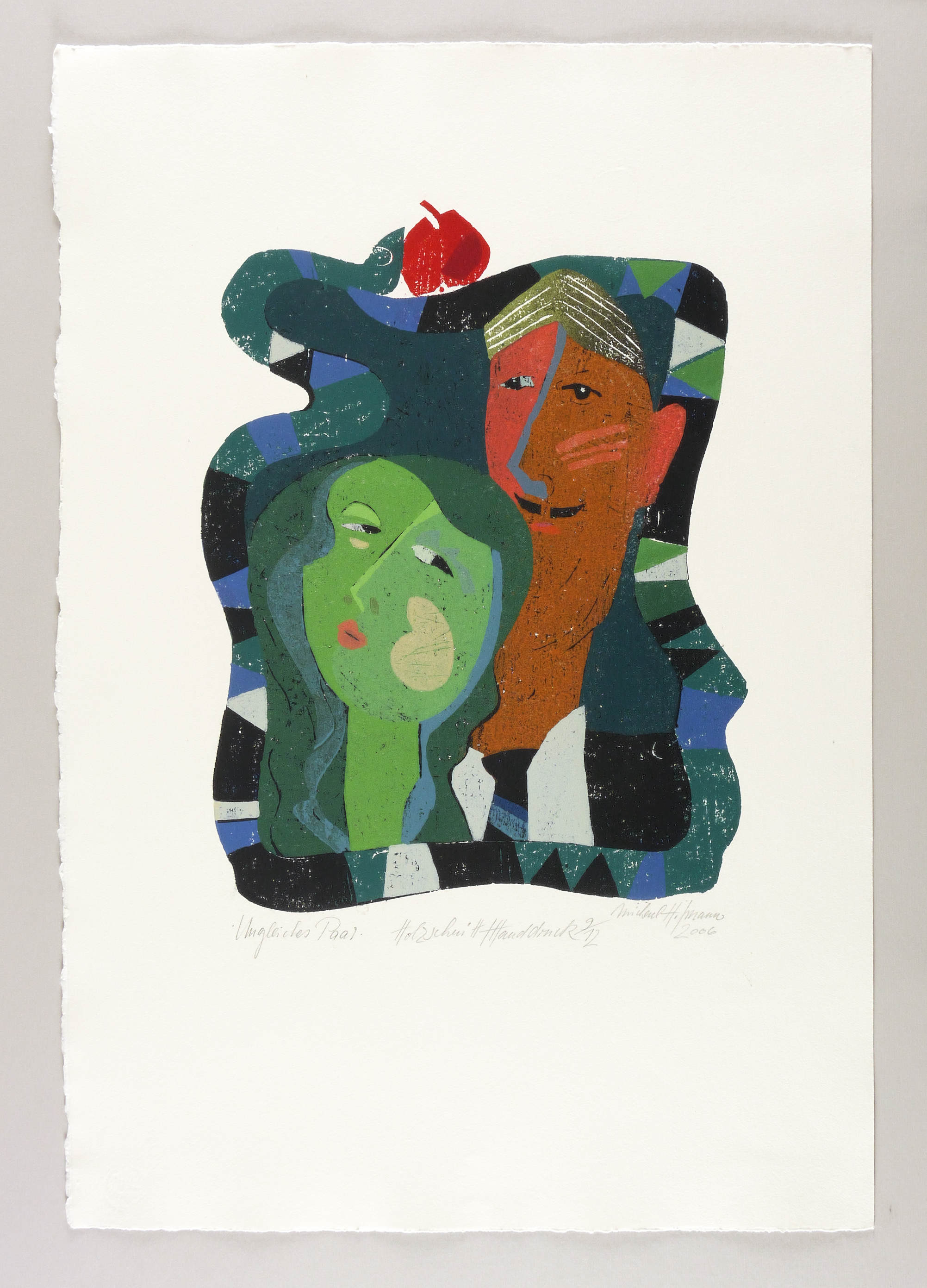 2006. Farbholzschnitt, auf Hahnemühle-Bütten. – Originale Künstlergrafik, von Michael Hofmann. – Auflage Exemplar Nr. 9/12. – 47,0 x 35,0 cm (Darstellung / Druckstock), 78,5 x 54 cm (Blatt).