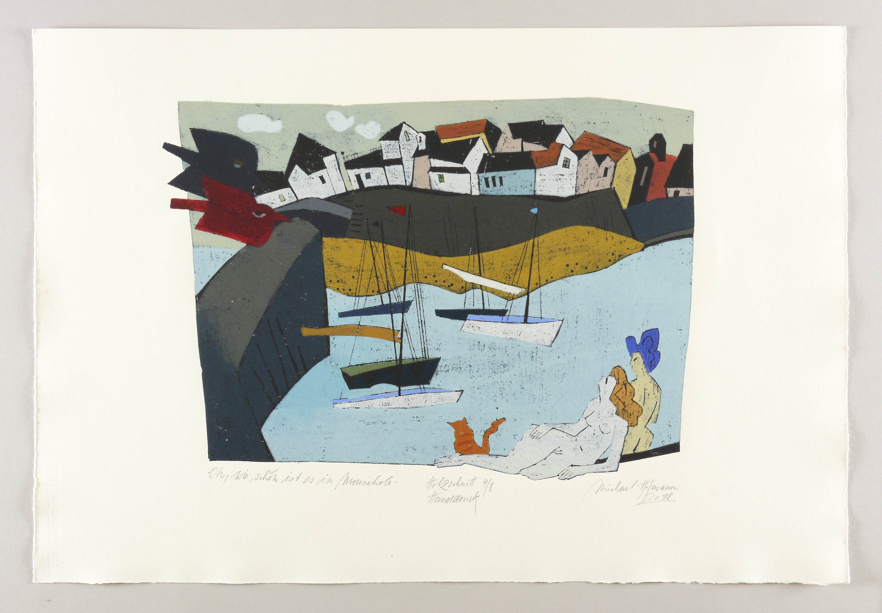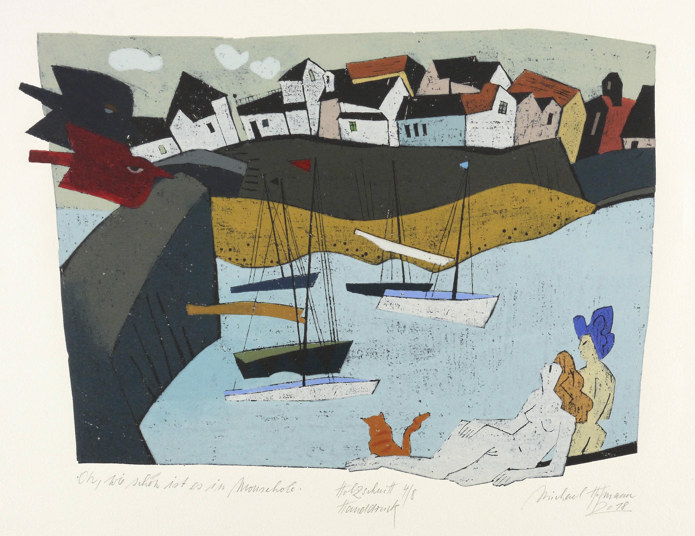 2018. Farbholzschnitt, auf Bütten. – Originale Künstlergrafik, von Michael Hofmann. – Auflage Exemplar Nr. 4/8. – 36,7 x 51,1 cm (Darstellung / Druckstock), 53,5 x 78 cm (Blatt).