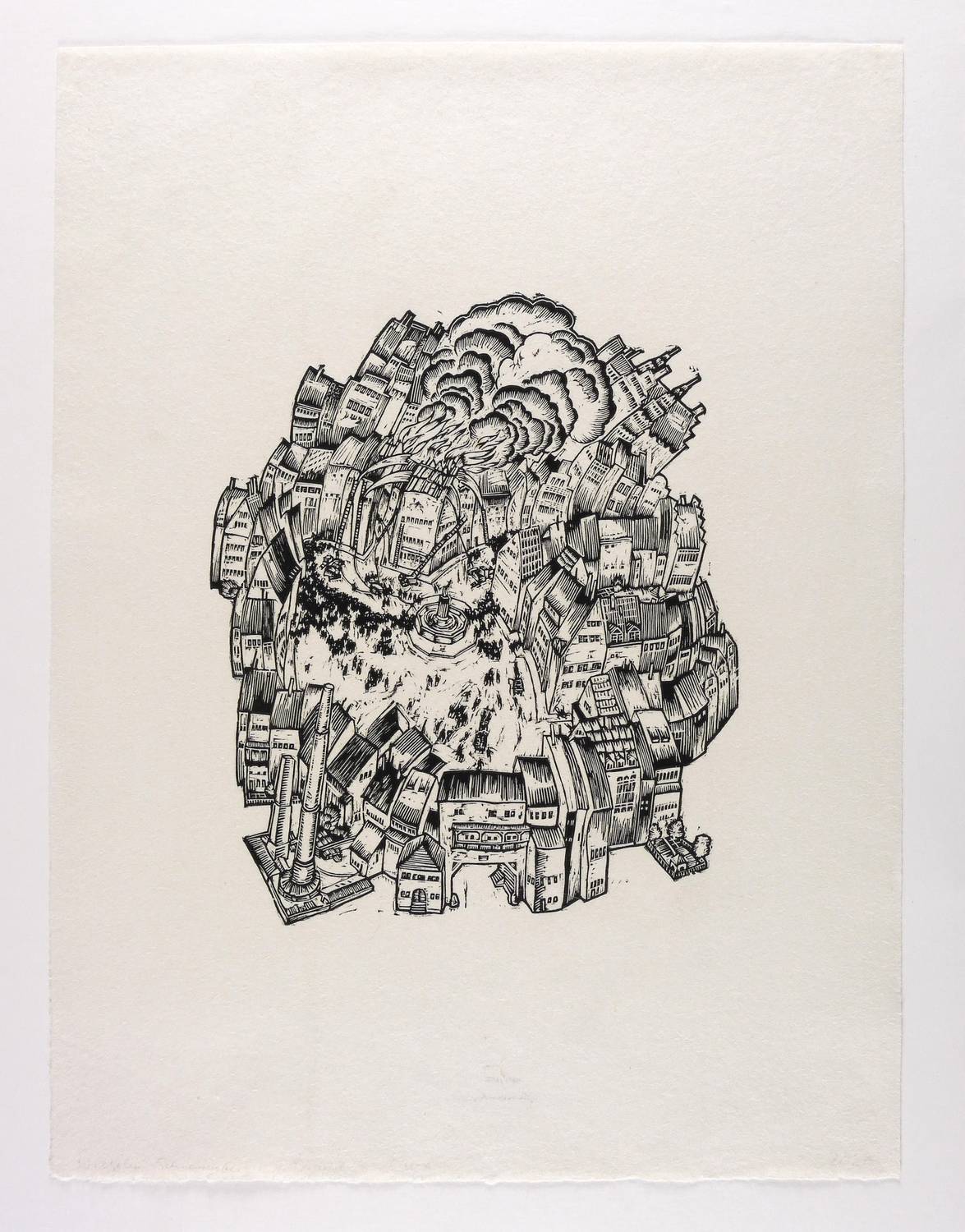 1962. Holzschnitt, in Schwarz, auf rauem Simili-Japan. – Originale Künstlergrafik, von Wilhelm Schnarrenberger. – 32,9 x 28,0 cm (Darstellung / Druckbild), 61 x 46 cm (Blatt).