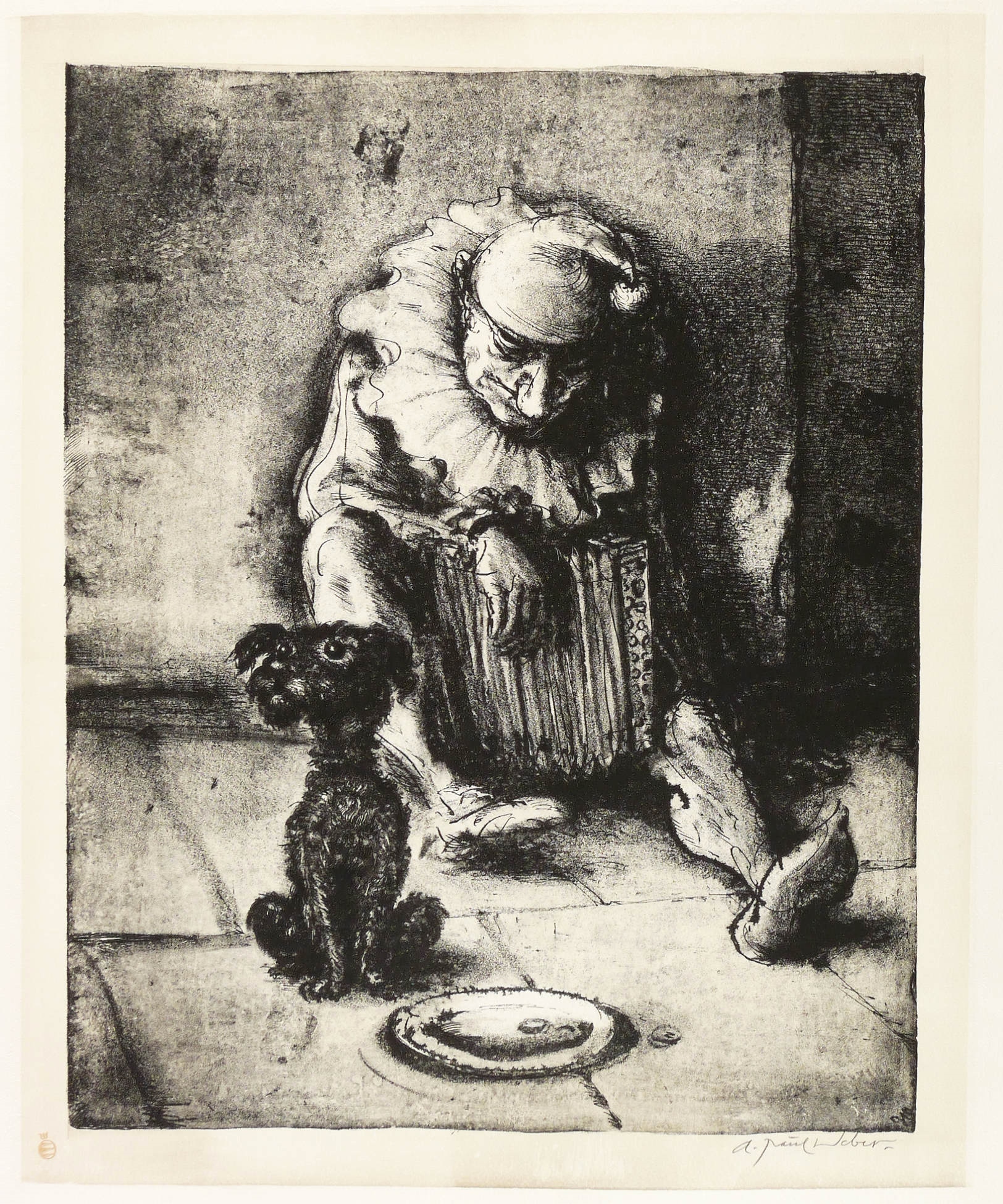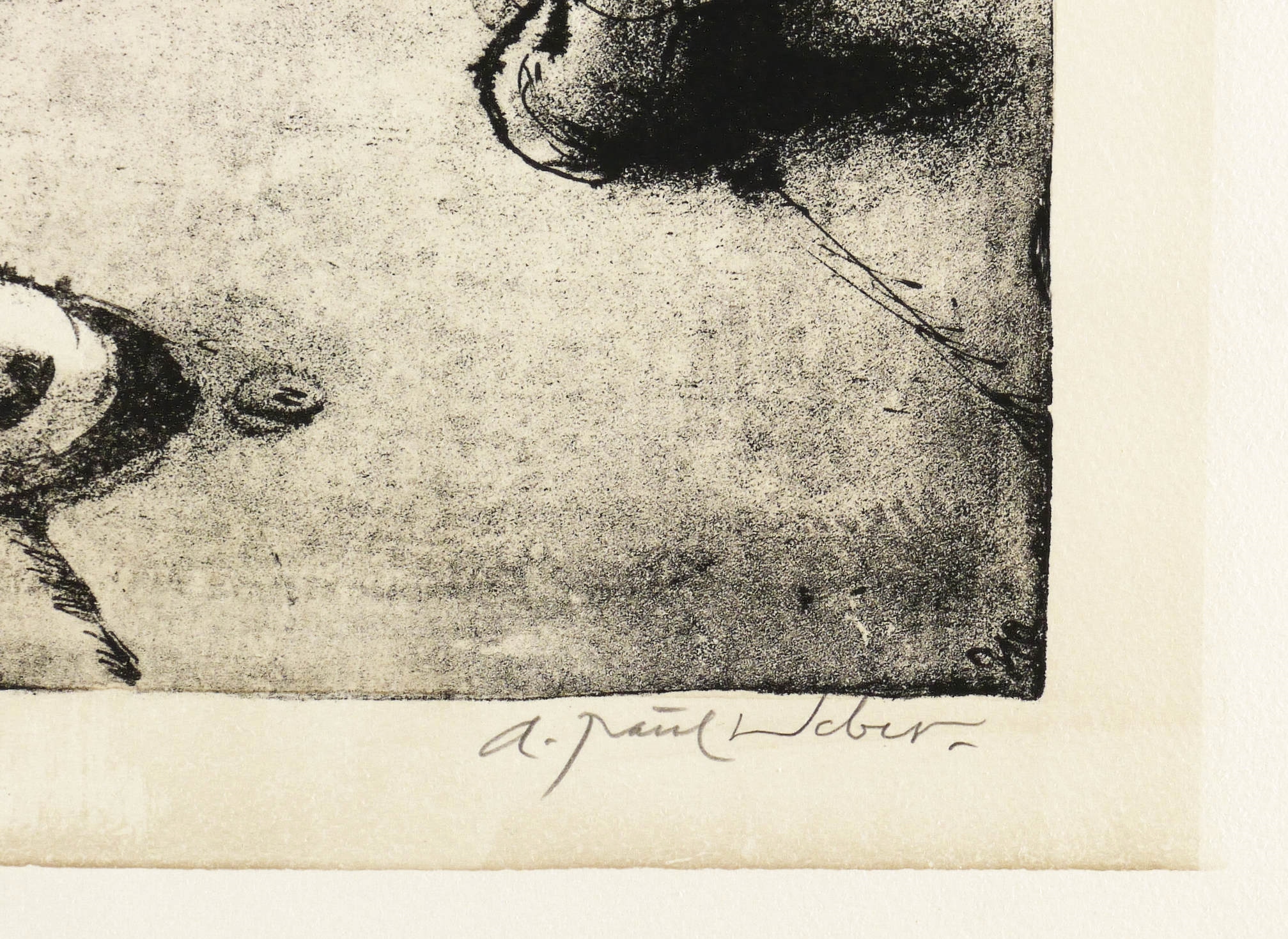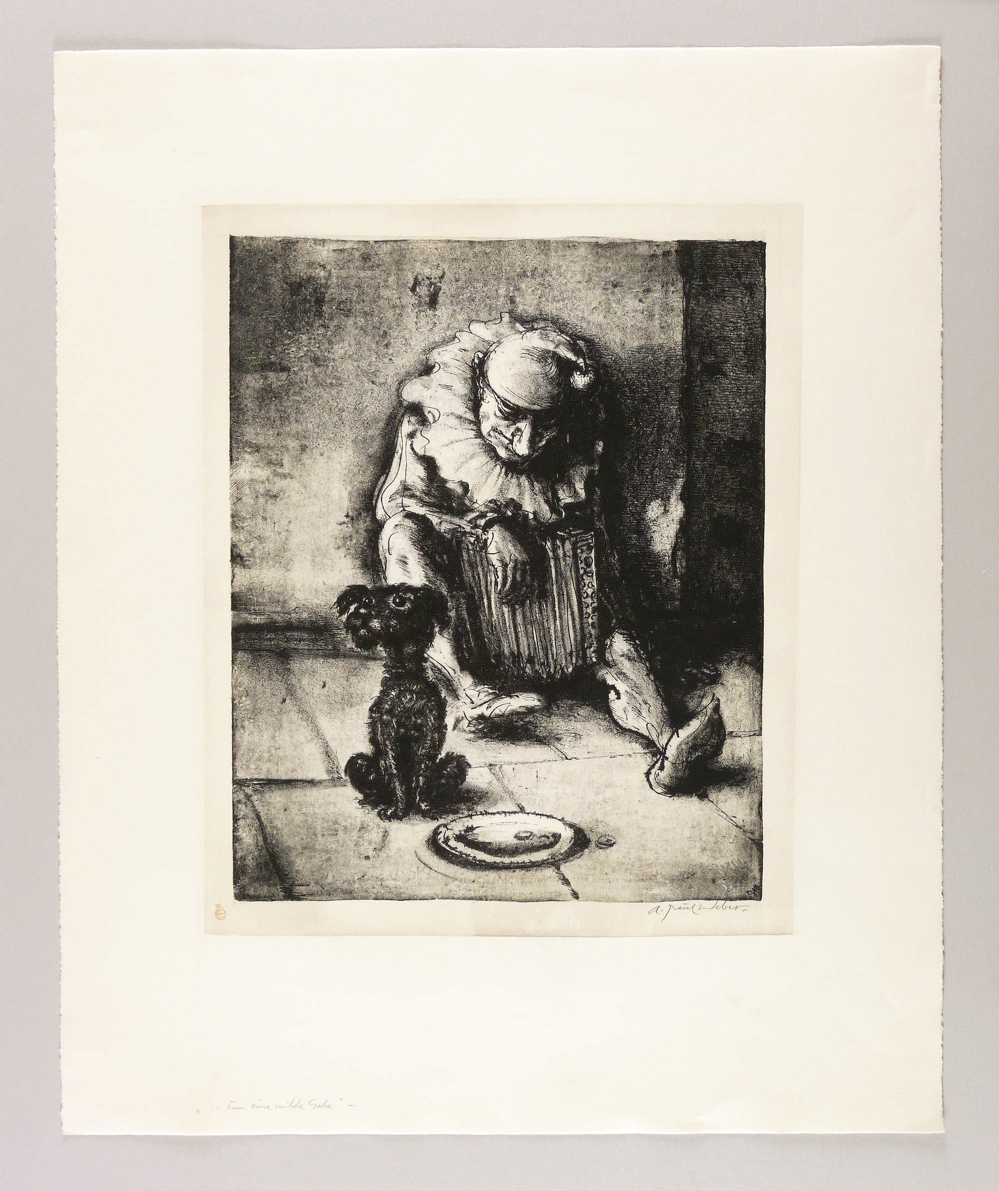Rechts unten in Bleistift signiert: ″A. Paul Weber.″ Links Stempel des Künstlers in Rot. Wasserzeichen mit Künstler-Signet. – Im Blattrand leichte Lagerspuren, minimal betoßen und knickspurig. Insgesamt mäßig guter Zustand.