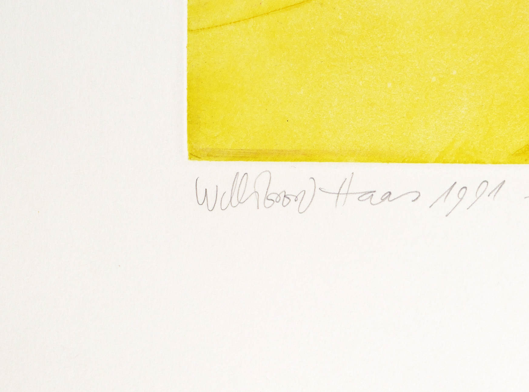 Links unten in Bleistift signiert und datiert: ″Willibrord Haas 1991″. Links Auflagenbezeichnung. Mittig Titel: ″crépuscule - gelb-rot Zusammendruck″. – Ohne Mängel. Tadellos erhalten.