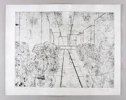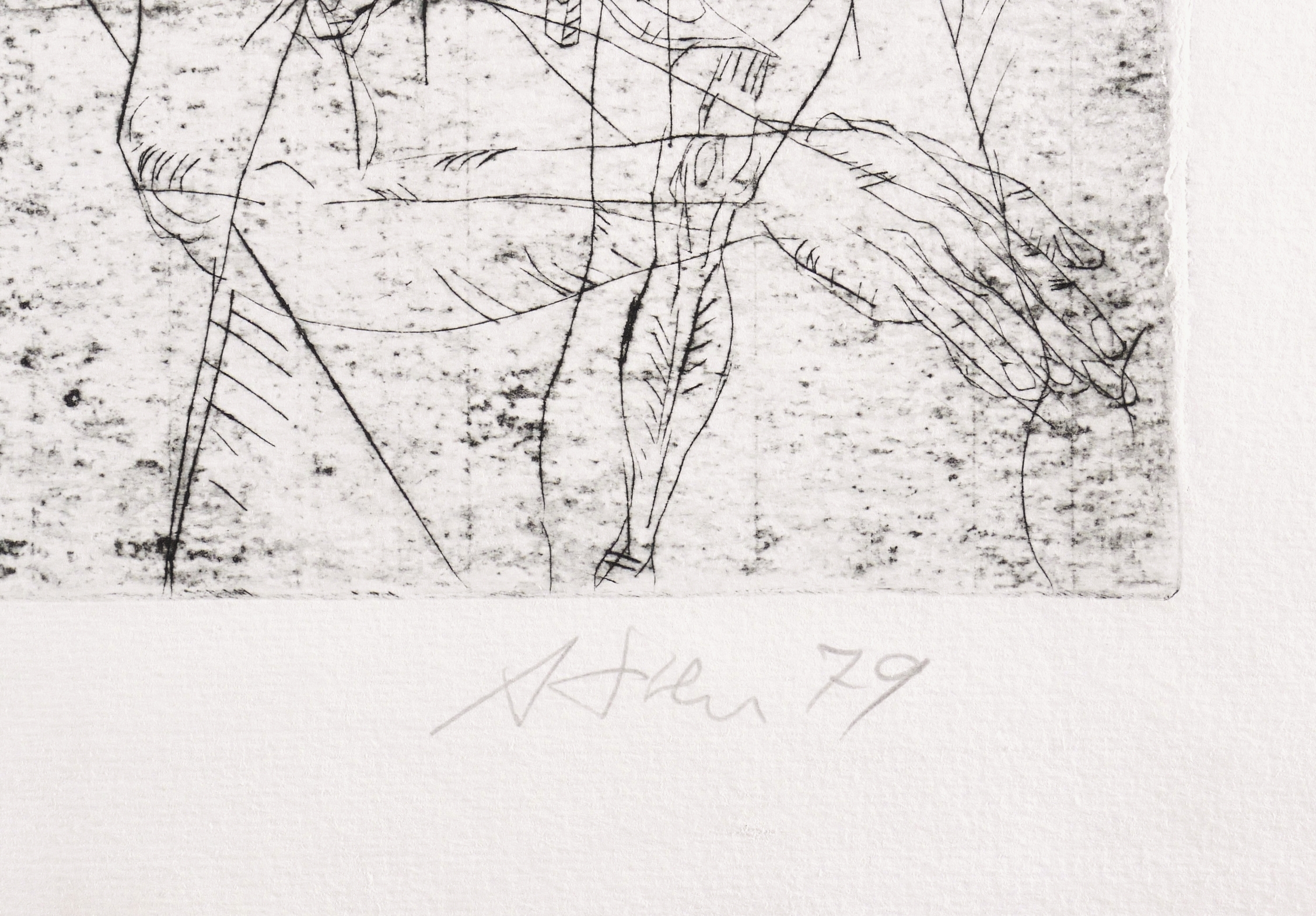 1979. Radierung / Kaltnadel, in Schwarz, mit Plattenton, auf hartem hellchamois Weißenborn. – Originale Künstlergrafik, von Andreas Dress. – Probedruck. – 49,6 x 64,8 cm (Darstellung / Platte), 59 x 75 cm (Blatt).