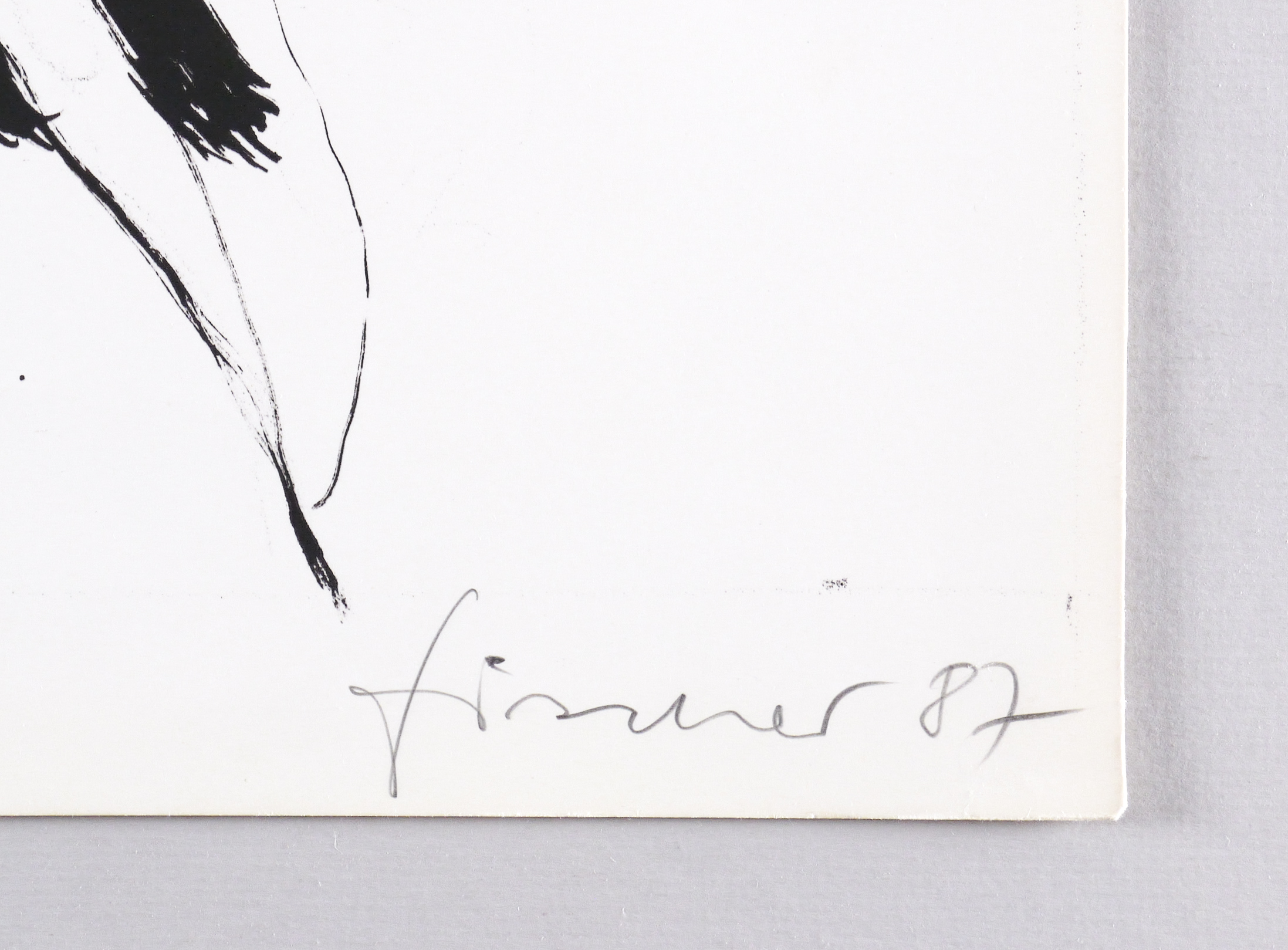 1987. Farbalgrafie / Kreide- & Pinselalgrafie, in Schwarz, auf glattem weißem Velinkarton. – Originale Künstlergrafik, von Steffen Fischer. – Auflage Exemplar Nr. 3/10. – 52,7 x 61,2 cm (Darstellung / Druckbild), 57 x 69 cm (Blatt).