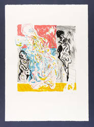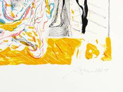 2001. Farblithografie / Kreide- & Pinsellithografie, in 5 Farben, auf weißem Velinkarton. – Originale Künstlergrafik, von Andreas Dress. – Auflage Exemplar Nr. 136/250. – 34,7 x 31,5 cm (Darstellung / Druckbild), 59 x 42 cm (Blatt).