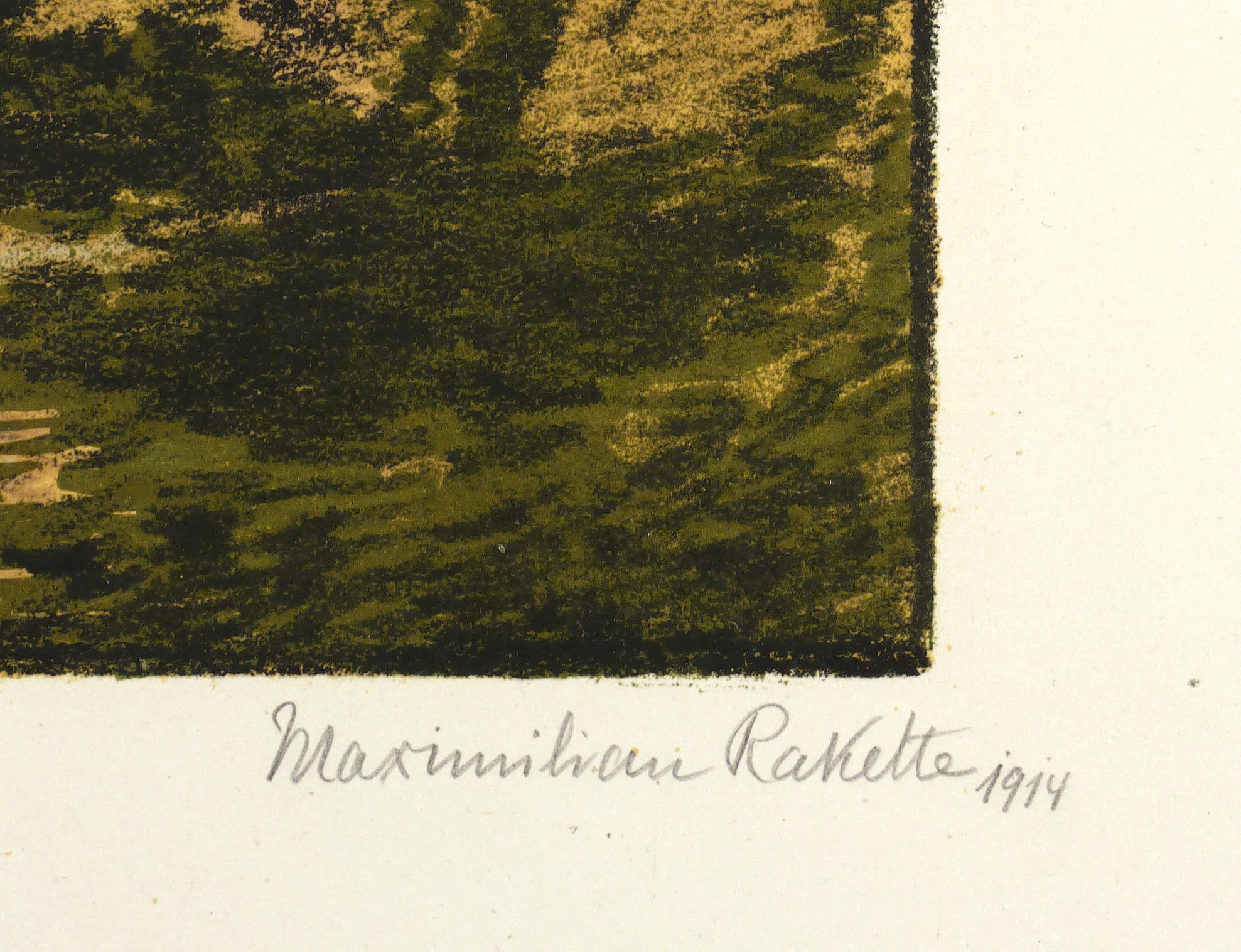 1914. Farblithografie / Kreidelithografie, in 6 Farben, auf glattem gelbem Karton. – Originale Künstlergrafik, von Maximilian Rakette. – 36,8 x 44,8 cm (Darstellung / Druckbild), 48 x 65 cm (Blatt).
