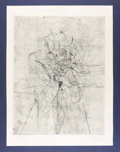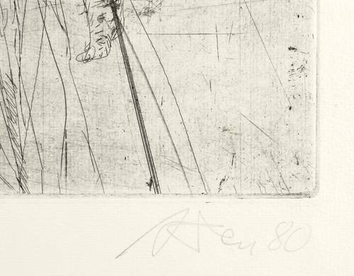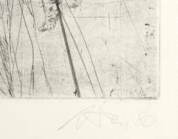 1980. Radierung / Strichätzung & Kaltnadel, in Schwarz, mit Plattenton, auf gehämmertem Büttenkarton. – Originale Künstlergrafik, von Andreas Dress. – 64,3 x 49,6 cm (Darstellung / Platte), 76 x 58 cm (Blatt).