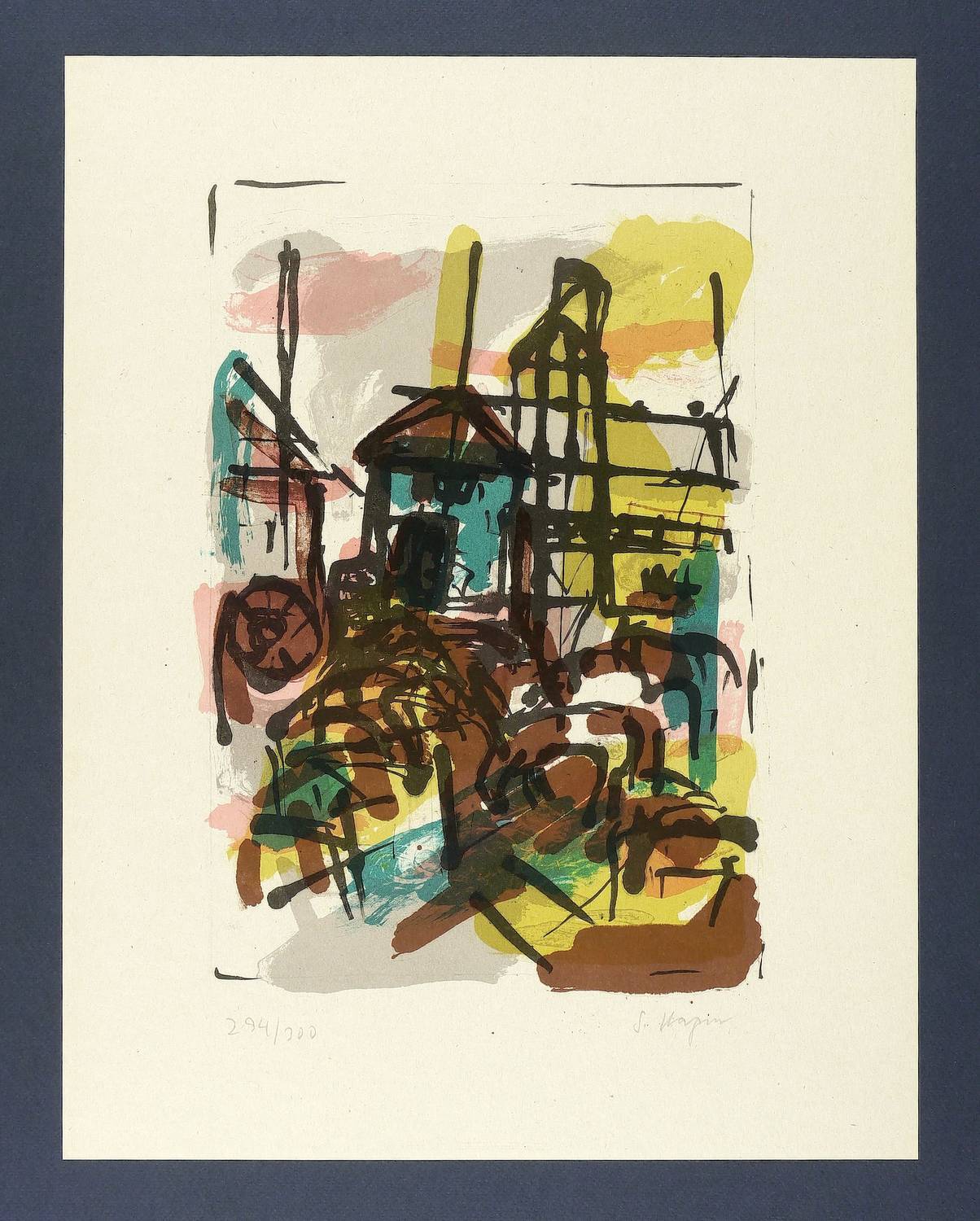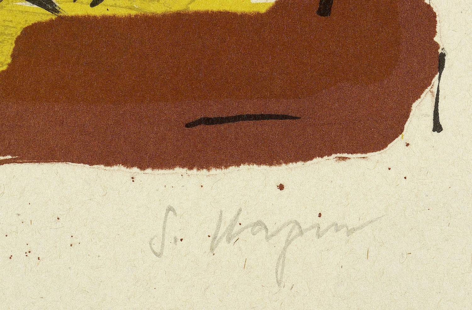 2000. Farblithografie / Kreidelithografie, in 6 Farben, auf hellchamois Velinkarton. – Originale Künstlergrafik, von Sylvia Hagen. – Auflage Exemplar Nr. 294/300. – 32,5 x 22,5 cm (Darstellung / Druckbild), 45 x 35 cm (Blatt).