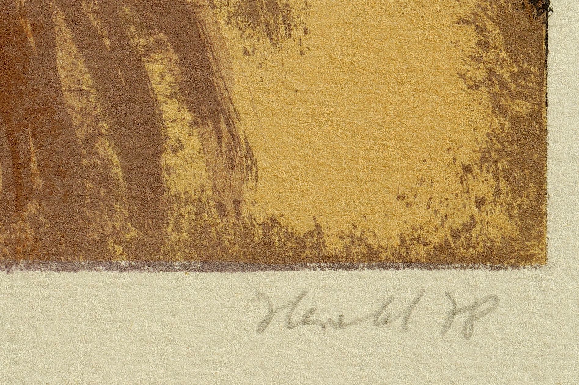 1978. Farblithografie / Offsetlithografie, in 4 Farben, auf gelblichem Velin. – Originale Künstlergrafik, von Rainer Herold. – Auflage Exemplar Nr. 76/150. – 27,5 x 33,0 cm (Darstellung / Druckbild), 36 x 49 cm (Blatt).