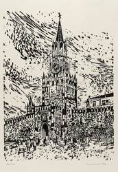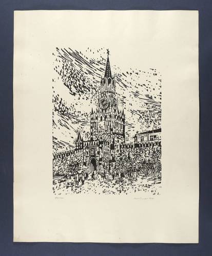 1970. Holzschnitt, in Schwarz, auf Velin. – Originale Künstlergrafik, von Aini Teufel. – 39,8 x 29,1 cm (Darstellung / Druckstock), 63 x 50 cm (Blatt).